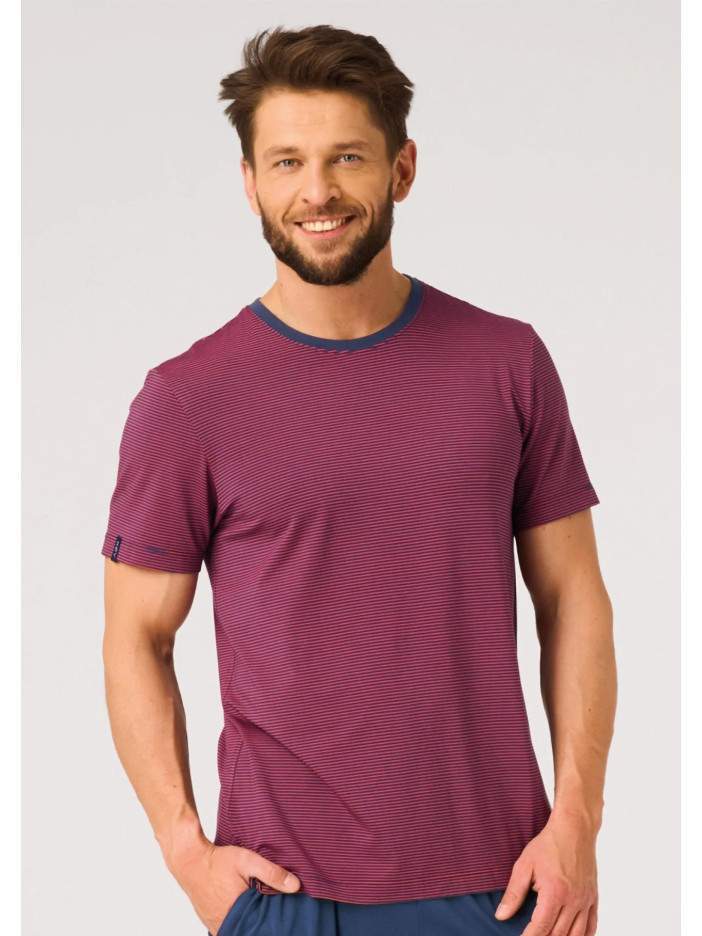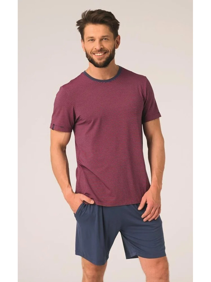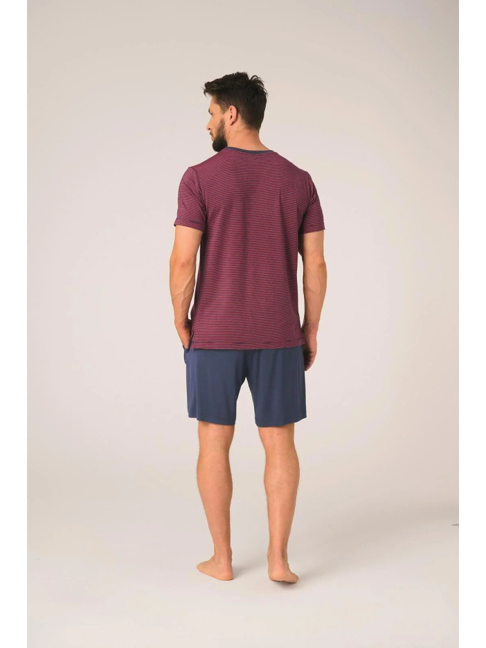 Чоловіча піжама Key — ідеальний вибір для чоловіків, які цінують комфорт, свободу рухів і сучасний повсякденний стиль, виконана з м’якої та приємної до тіла тканини на основі бамбука, яка добре пропускає повітря та забезпечує максимальний комфорт під час сну і відпочинку, комплект включає футболку з короткими рукавами у стильну контрастну смужку та однотонні шорти вільного крою, футболка доповнена класичним круглим вирізом із контрастною окантовкою, що надає образу динамічності та спортивного вигляду, шорти мають еластичний пояс, який забезпечує зручну посадку і комфорт протягом усієї ночі, завдяки універсальному дизайну та гармонійному поєднанню кольорів ця піжама чудово підходить як для сну, так і для домашнього відпочинку, підкреслюючи стиль і забезпечуючи максимальну зручність щодня