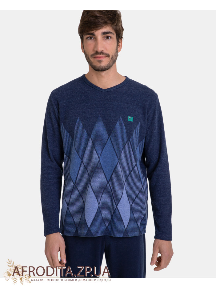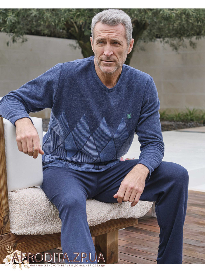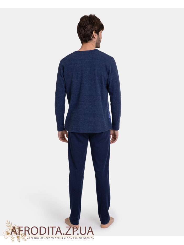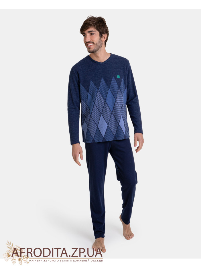 Чоловіча піжама зі штанами Massana P731324 з бавовняного полотна. Комплект складається з кофти з довгим рукавом та V-подібним вирізом на горловині та штанів прямого крою.