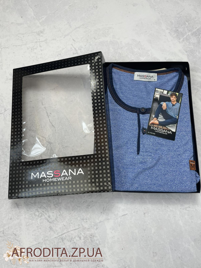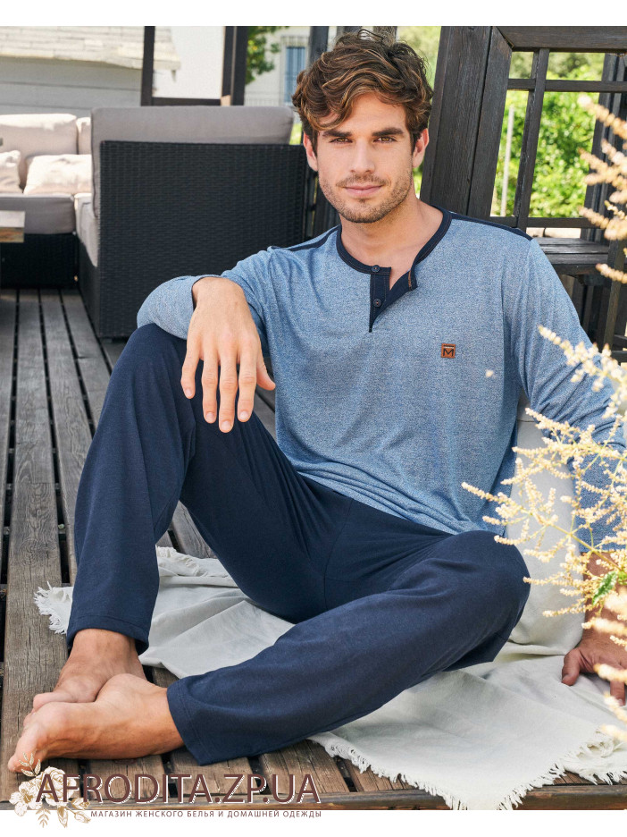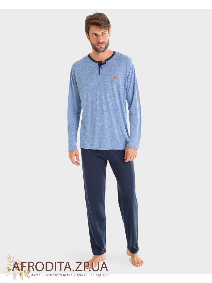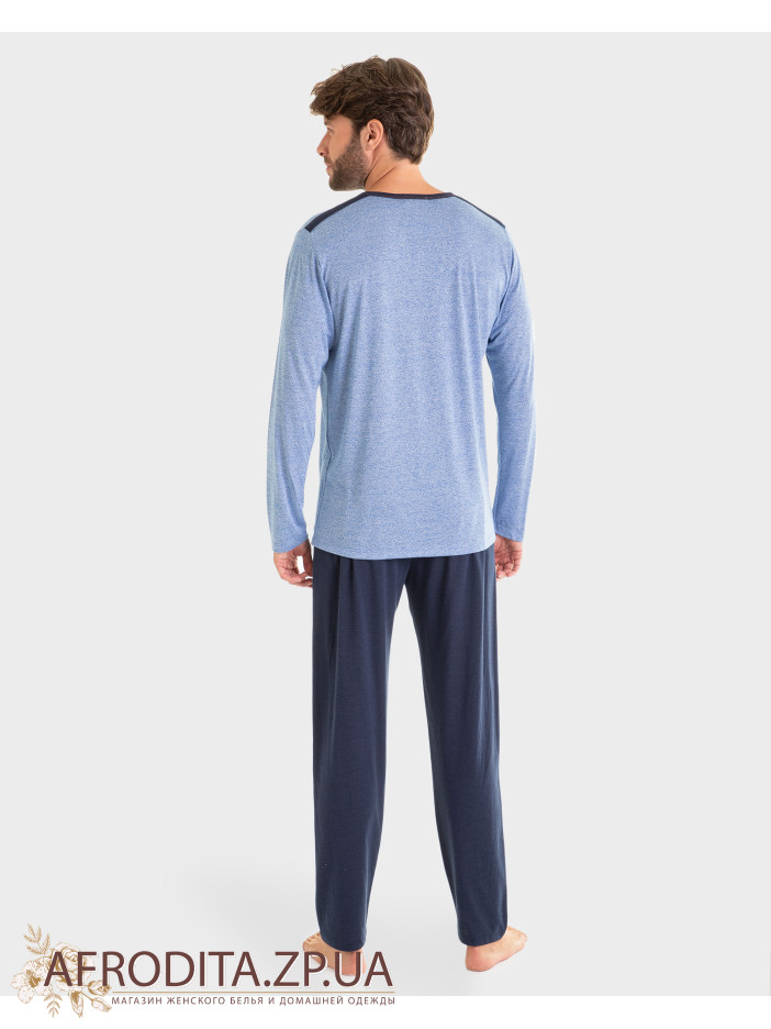 Чоловіча піжама Massana P231335 складається з футболки з довгими рукавами, круглим вирізом горловини та вирізом. Довгі штани з регульованою талією.