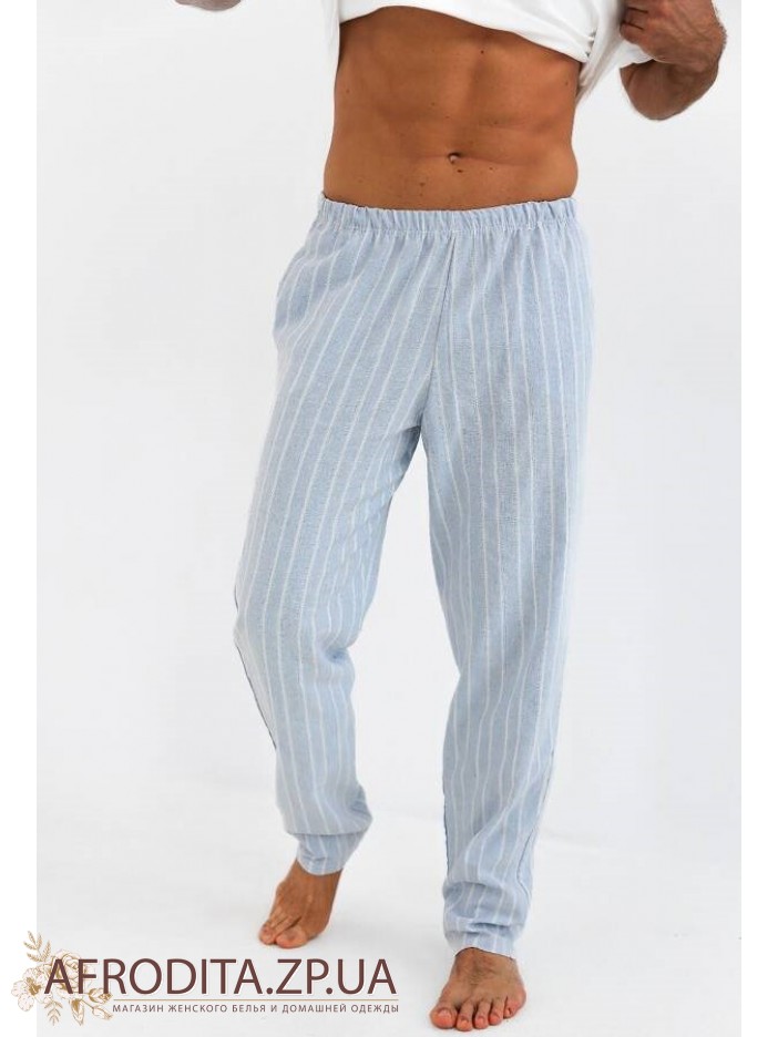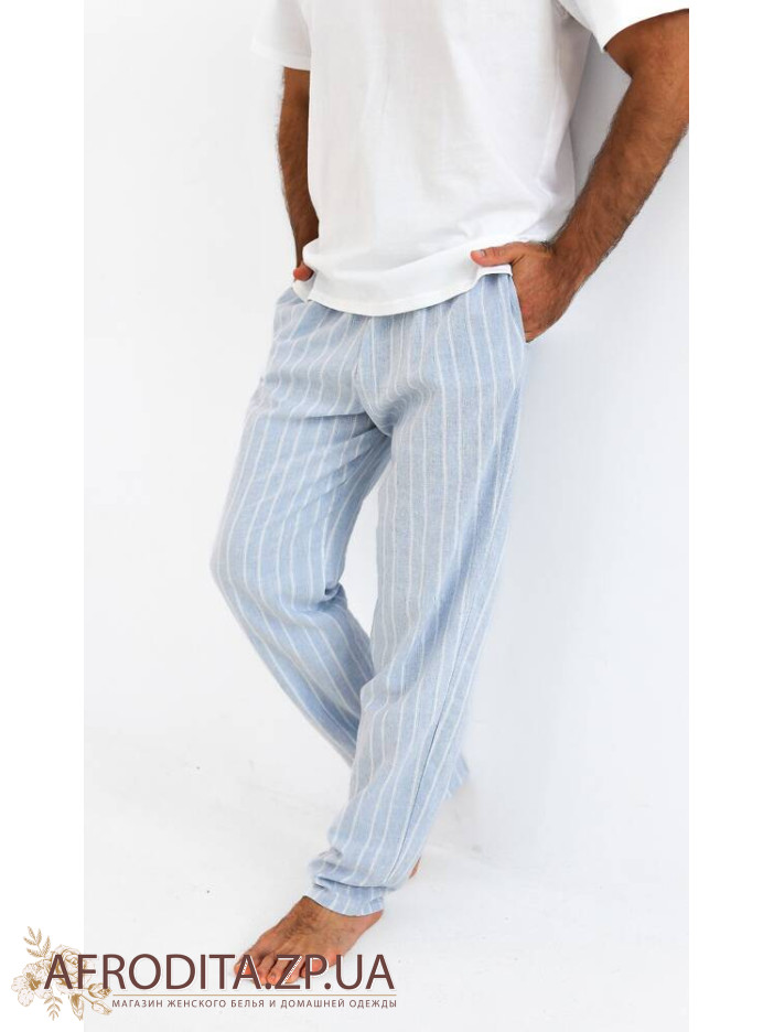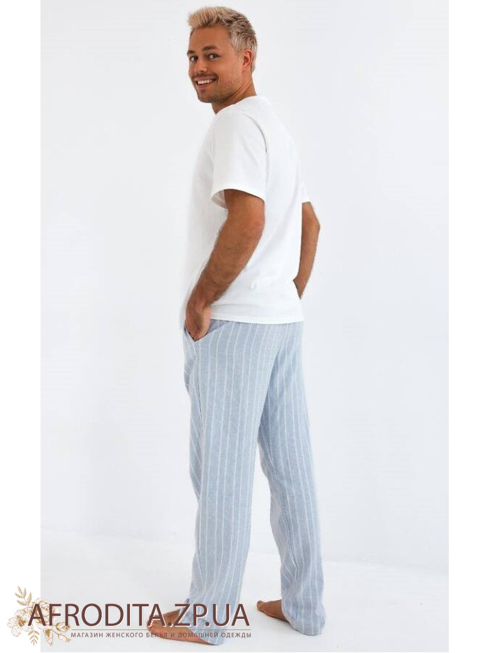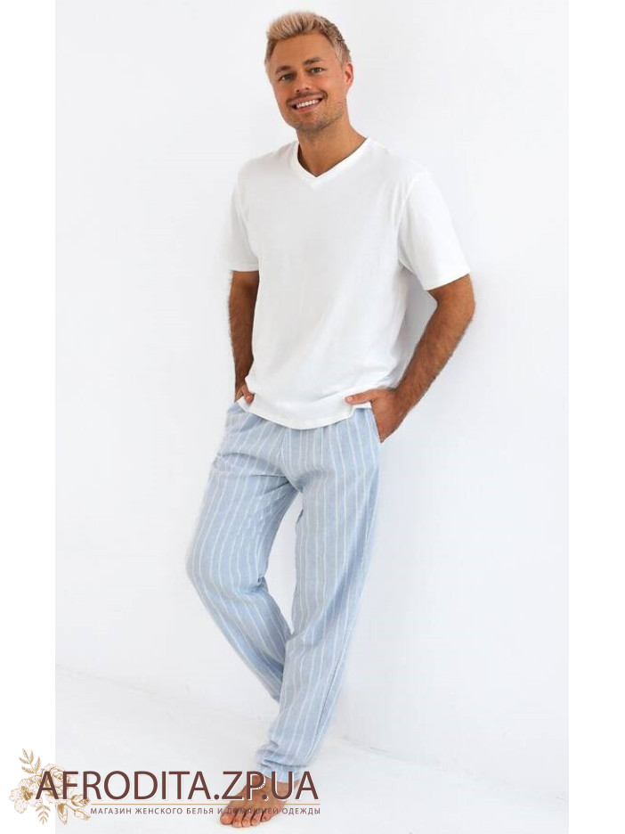 Чоловіча піжама зі штанами Sensis David із трикотажного полотна. Комплект складається з білої футболки з короткими рукавами та штанів вільного крою, з боків розташовані кишені.