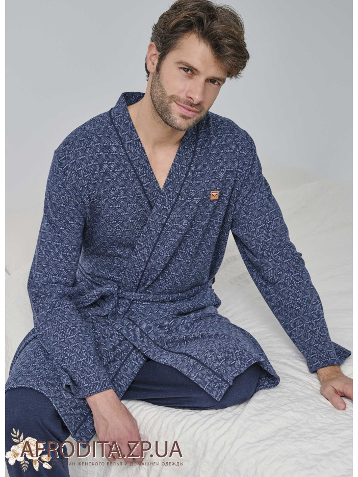 Чоловічий теплий халат Massana L736335 виробництво Іспанія. Халат на запах довжиною до колін. З боків розташовані кишені.