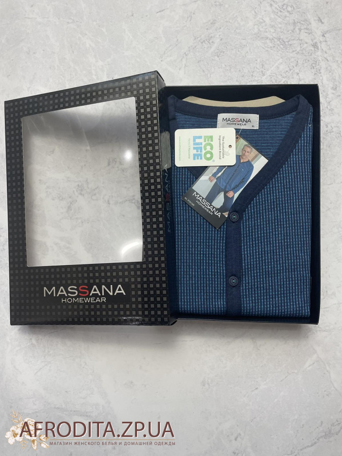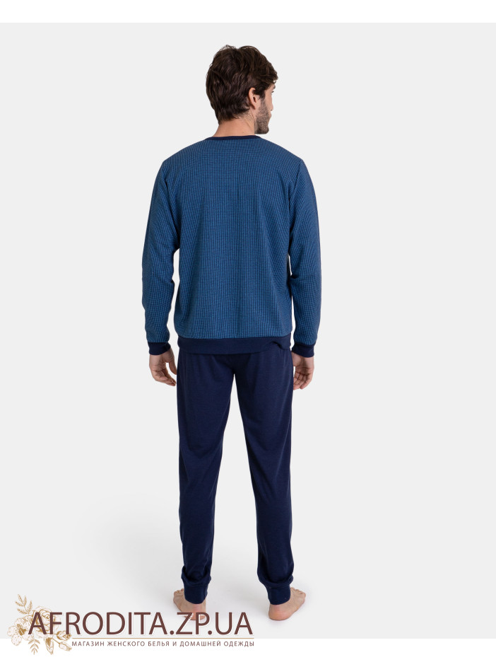 Піжама чоловіча з брюками Massana P731340 виробництво Іспанія. Комплект складається із джемпера сорочкового типу з довгими рукавами. Брюки прямого крою темно-синього кольору.