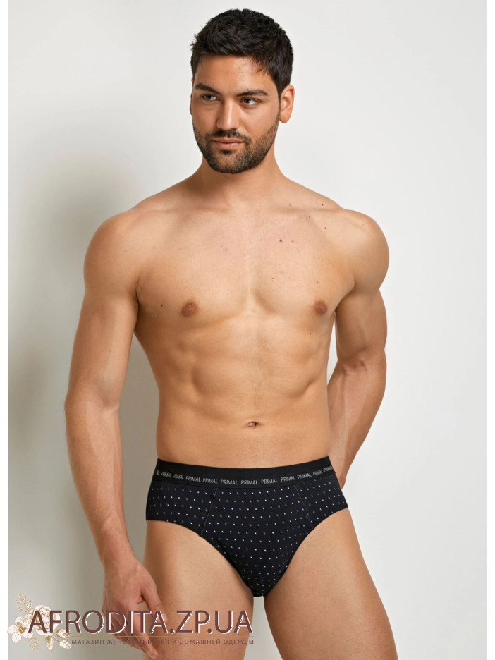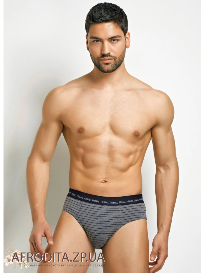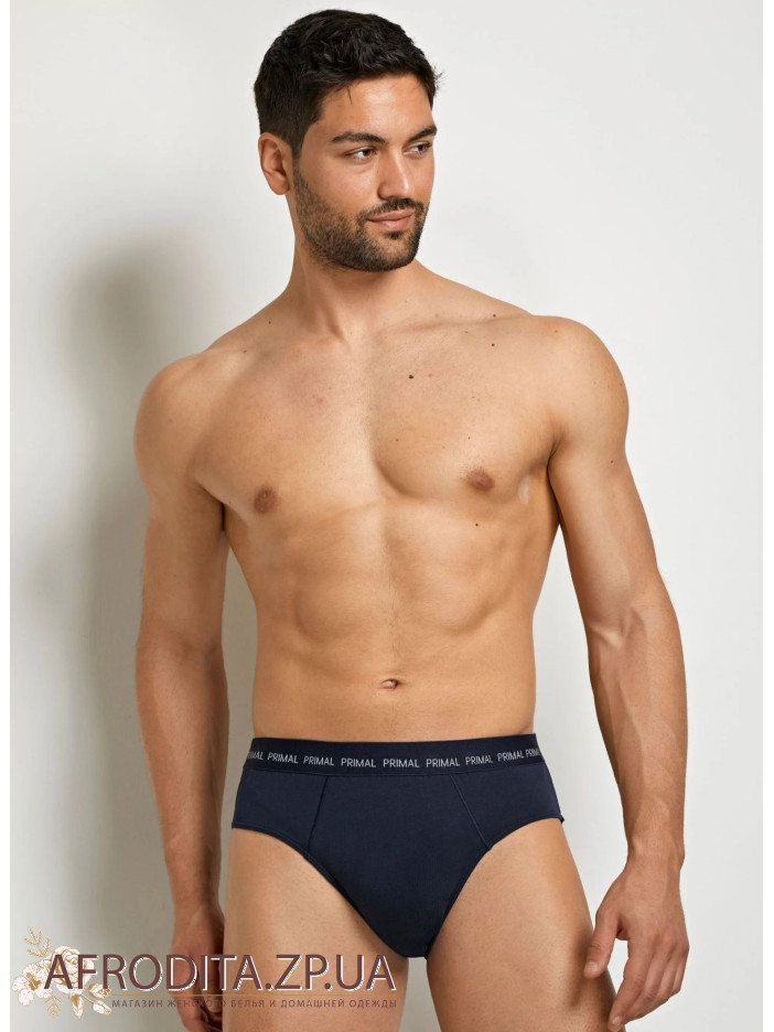 ЧОЛОВІЧІ ТРУСИ СЛІП PRIMAL S328 (3 ШТ.) Труси-сліп із поясом на широкій еластичній гумці з контрастним написом "PRIMAL" по колу. Задня деталь виробу безшовна. Зручна середня посадка. Прилеглий фасон, що дозволяє зробити труси практично непомітними під одягом. Котонові труси з додаванням еластану. В упаковці три кольори: чорний з дрібним принтом, синій однотонний, сірий у смужку.