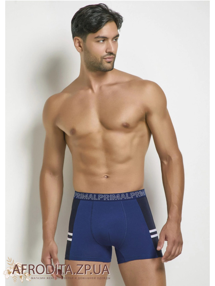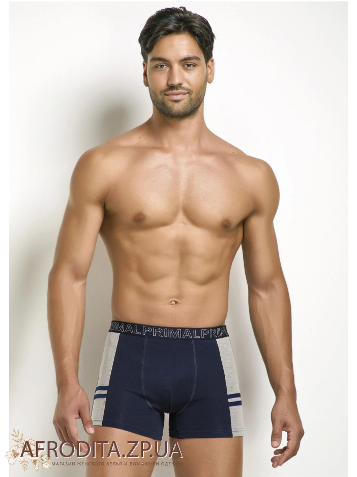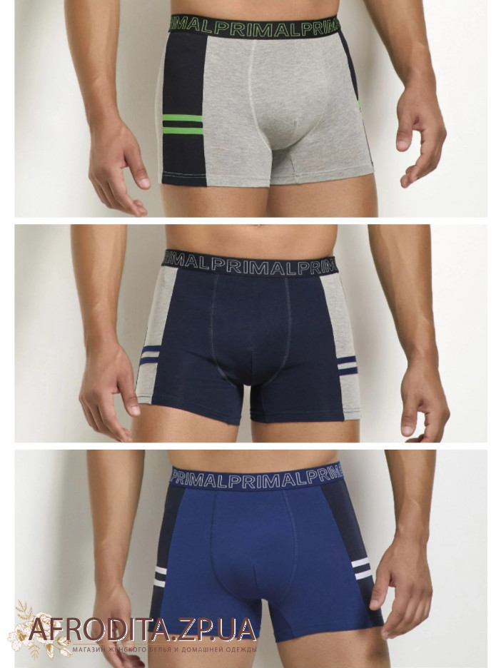 Чоловічі бавовняні труси боксери Primal B341. Набір із 3-х штук в одній упаковці. Пояс на широкій еластичній гумці з контрастним написом "PRIMAL" по колу. Задня деталь виробу безшовна. Зручна середня посадка. Прилеглий фасон, що дозволяє зробити труси практично непомітними під одягом. Котонові труси з додаванням еластану. Модель виконана у сортивному стилі. В упаковці три кольори - синій, джинс, сірий. Склад: Бавовна 95%, Еластан 5%.