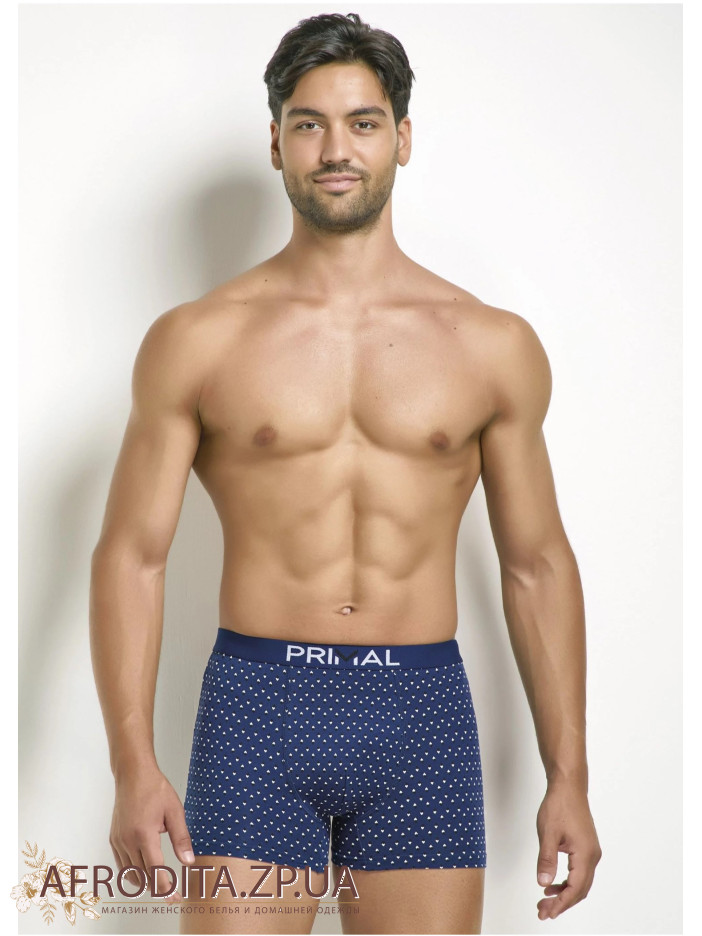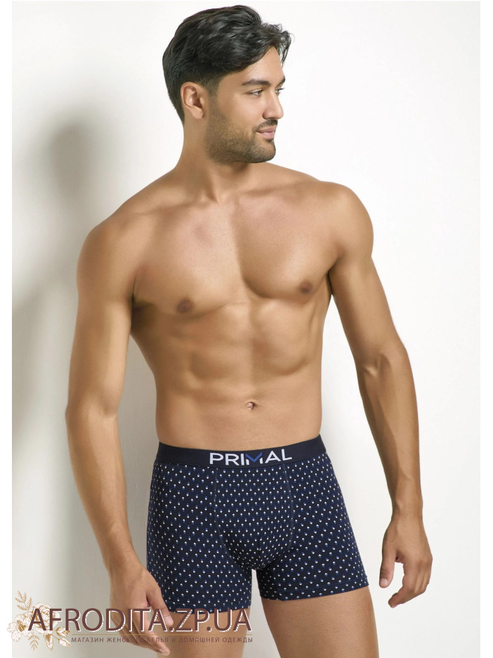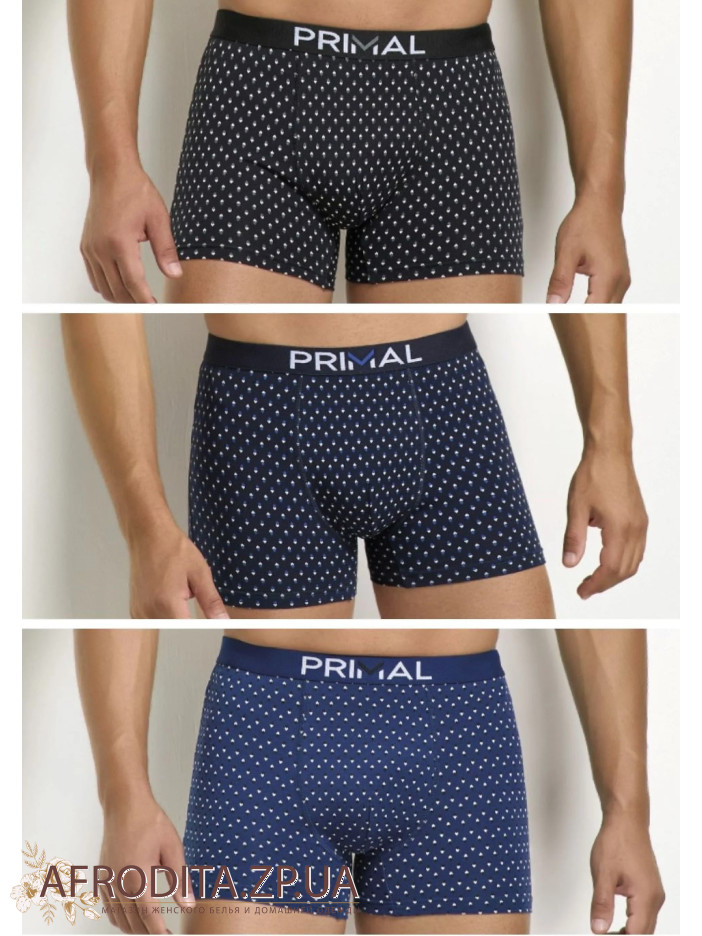 Чоловічі бавовняні труси боксери Primal B339. Набір із 3-х штук в одній упаковці. Пояс на широкій еластичній гумці з написом "PRIMAL". Задня деталь виробу безшовна. Зручна середня посадка. Прилеглий фасон, що дозволяє зробити труси практично непомітними під одягом. Тканина із дрібним принтом.