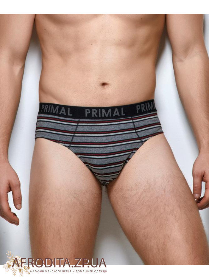 Бавовняні чоловічі труси Primal S303 з бавовни з еластаном, на поясі широка резинка з круговим написом "Primal". У упаковці 3 штуки.