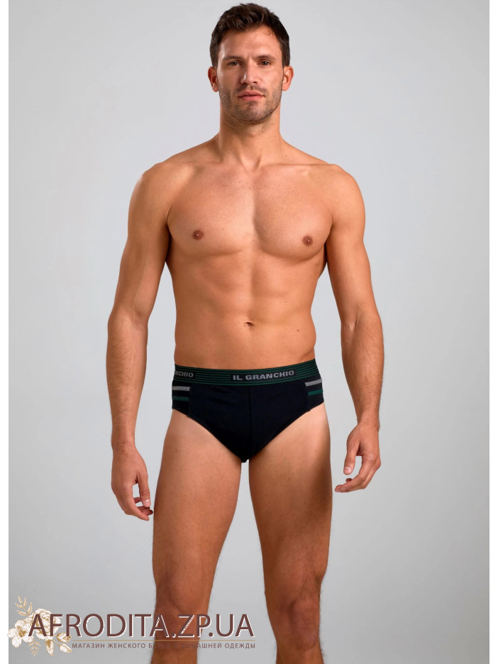 Чоловічі труси-сліпи IL GRANCHIO GS1257 з бавовни з додаванням еластану. Комфортна гумка з написом "IL GRANCHIO" по колу, задня частина безшовна. Навіть після численних прань чоловічі труси від IL GRANCHIO зберігають свою форму і початковий колір.