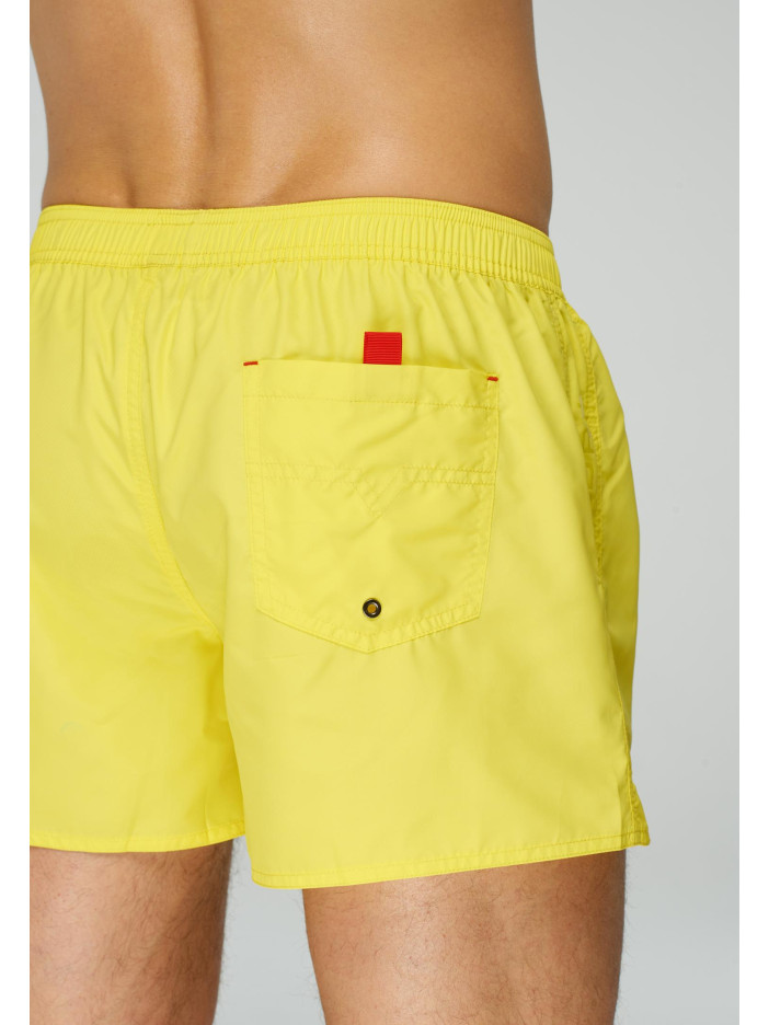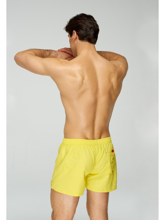 Чоловічі міні-шорти вільного крою з тканини, що швидко висихає — практична та комфортна модель для активного відпочинку та пляжного дозвілля. Довжина до середини стегна забезпечує свободу рухів, задня кишеня з клапаном додає функціональності, еластичний пояс зі шнурівкою дозволяє легко регулювати посадку, а м’яка сітчаста вставка всередині забезпечує вентиляцію та комфорт протягом усього дня.