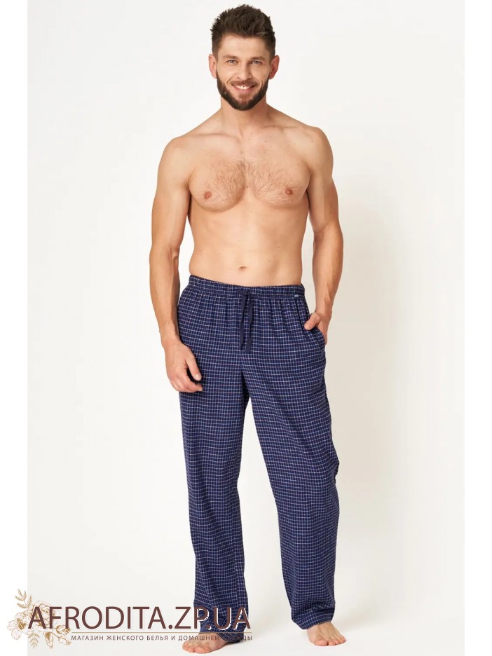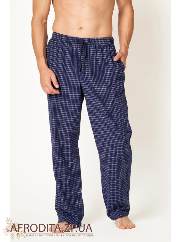 Чоловічі штани для дому MHT 457 B24 темно-синього кольору з бавовни. Штани прямого крою із бічними кишенями.