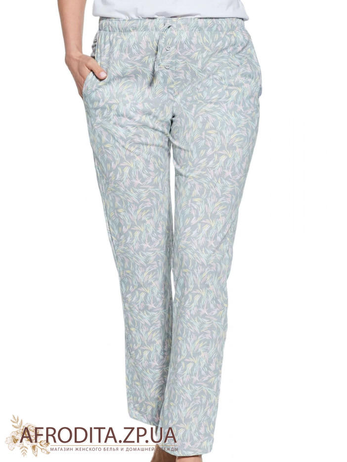 Жіночі штани прямого крою виготовлені з високоякісної бавовни. Штани на гумці, лінію талії можна регулювати шнурком.