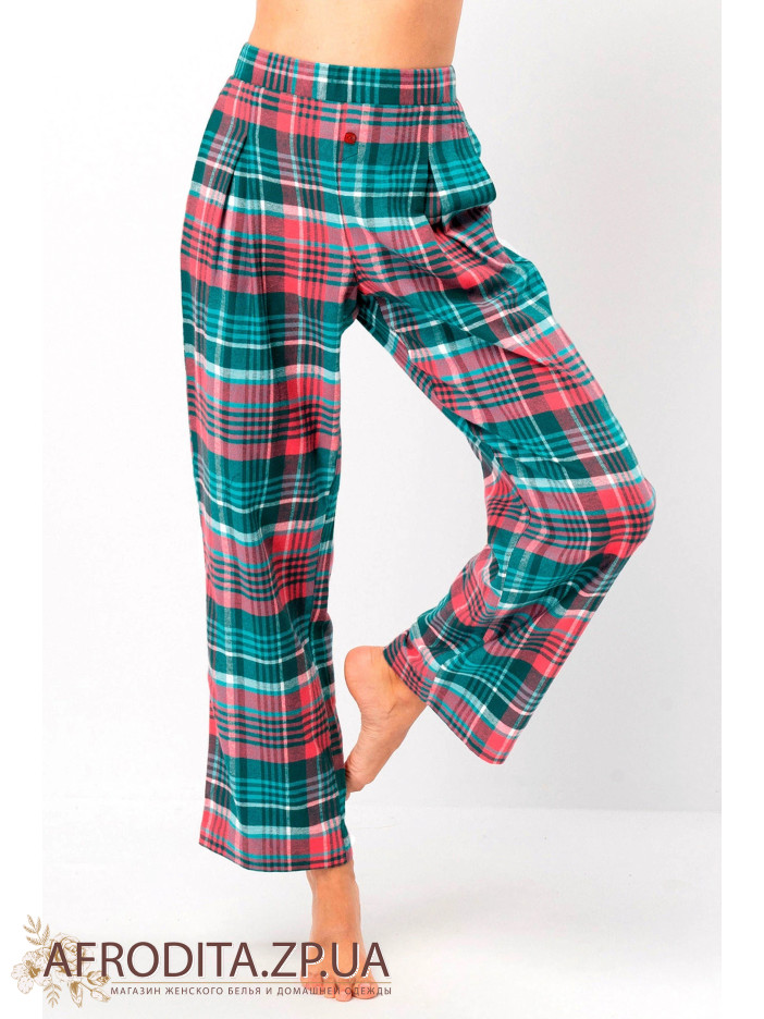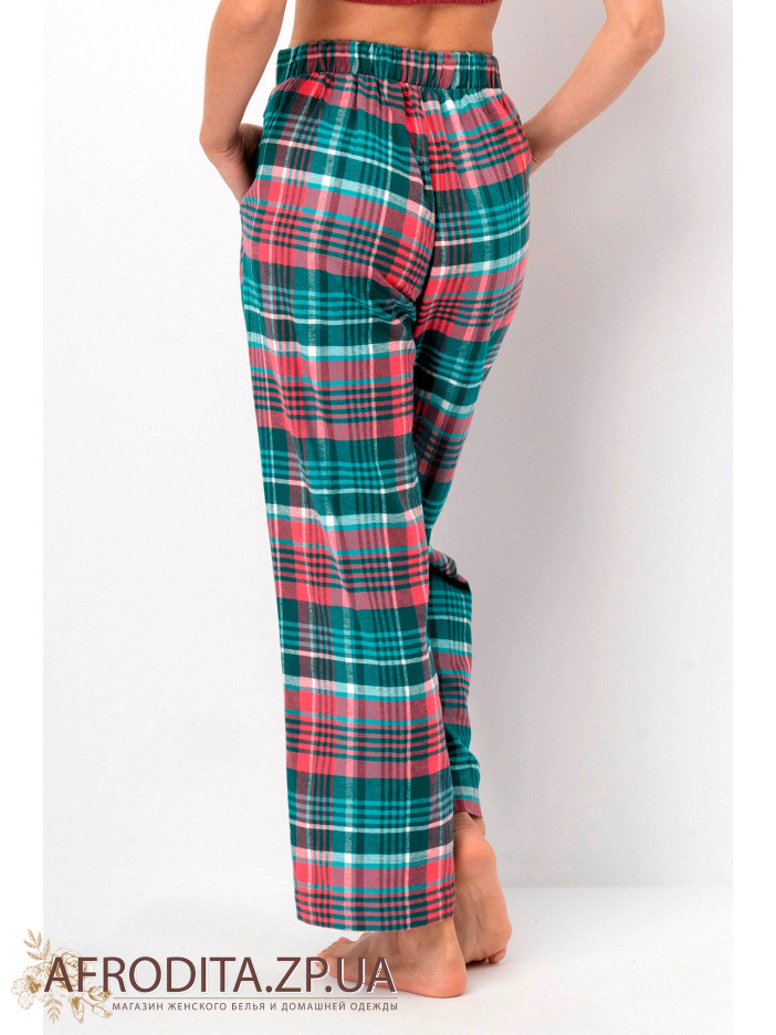Жіночі штани LHE 419 B25 від польського бренду Key з трикотажного полотна на основі бавовни. Модель в картатий принт на гумці в області талії. З боків розташовані кишені.