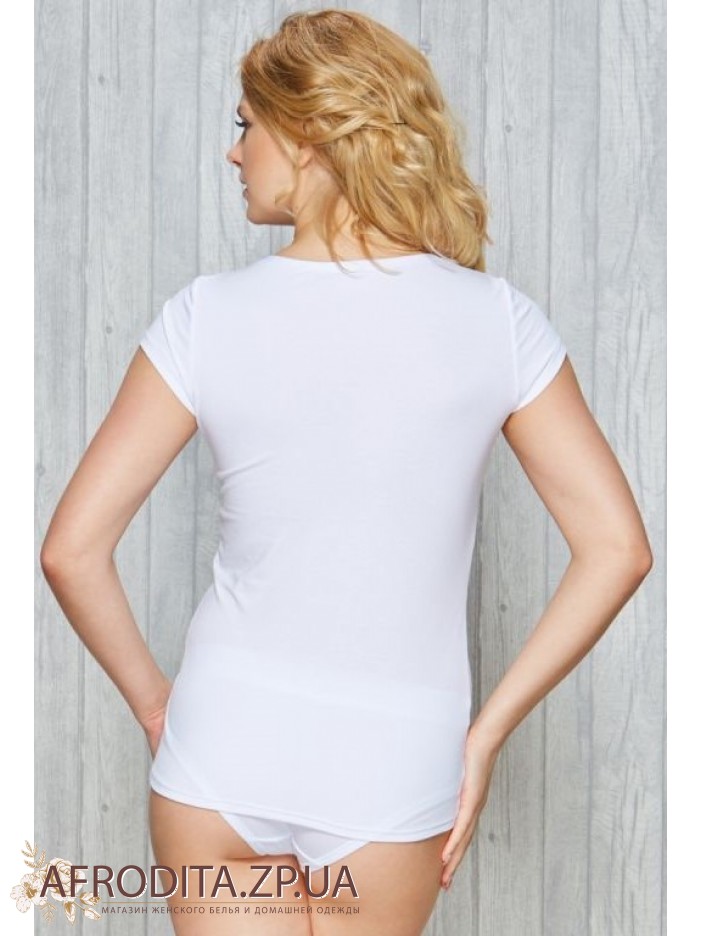 Жіноча футболка з коротким рукавом 50/9-86/2 від польського бренду Fabio, виготовлена з високоякісної тканини на основі бавовни. Виріз горловини має округлу форму.