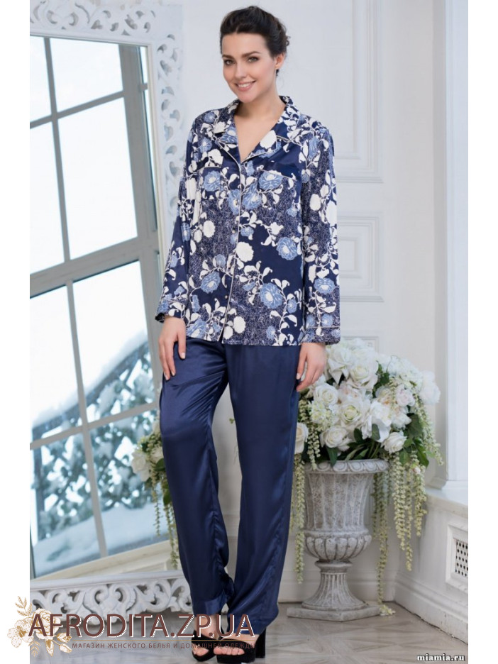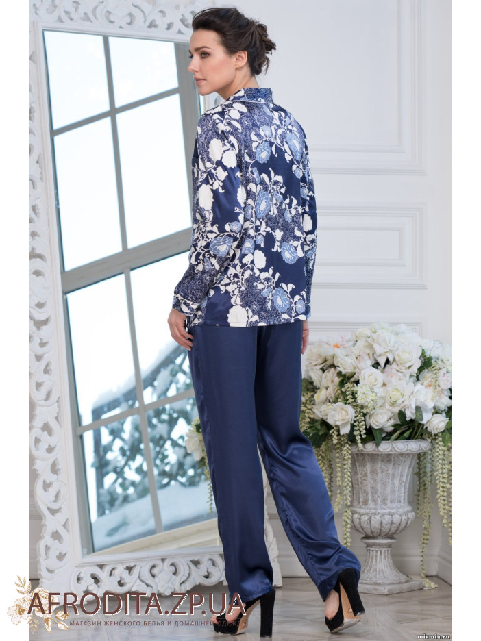 Розкішний домашній комплект "Півонія" 8236 від Mia-Amore (Італія). Комплект складається з принтованого жакета на, який застібається на гудзики і однотонних брюк. Склад: 100% поліестер.