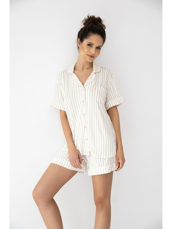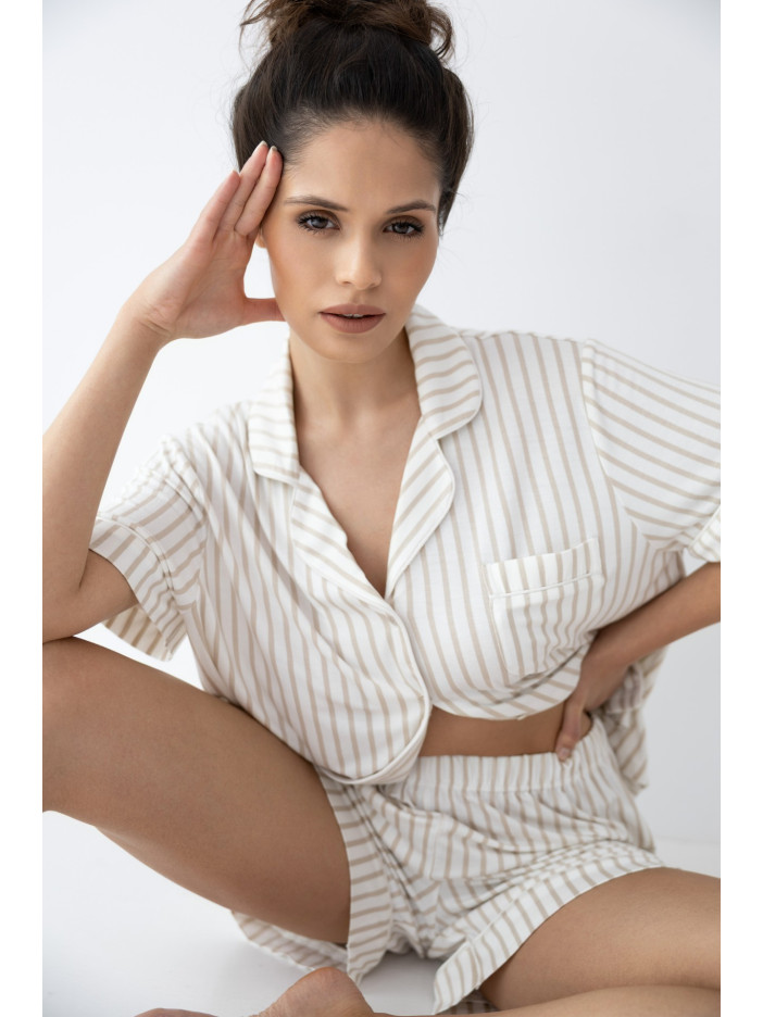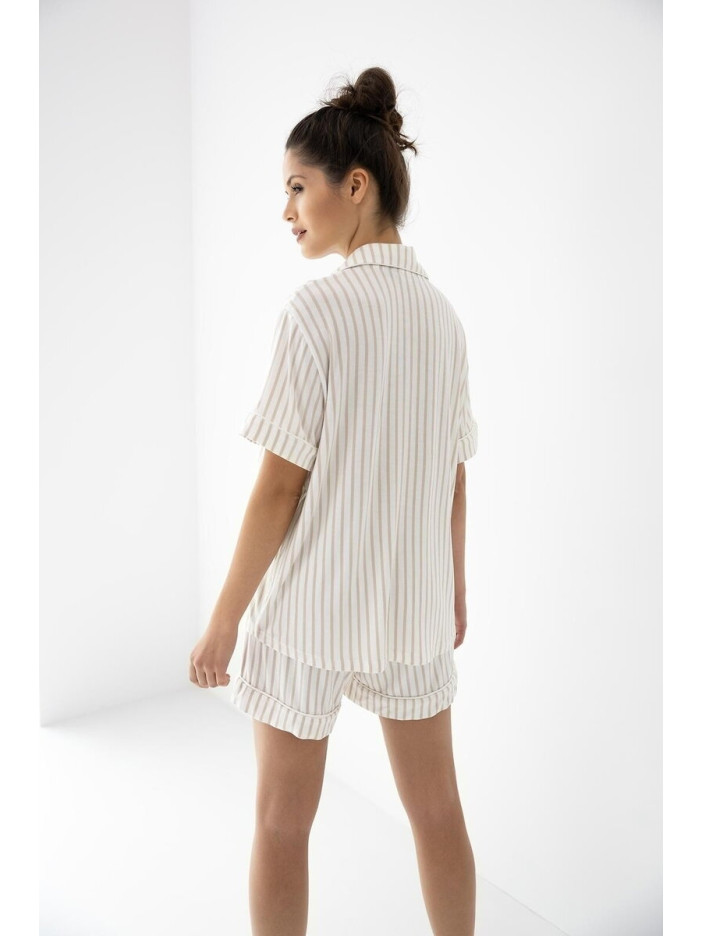 Комплект складається з прямих шортів і сорочки вільного крою, яка красиво сідає по фігурі та дарує відчуття легкості. М’яка та приємна до тіла тканина забезпечує комфорт протягом усього дня.