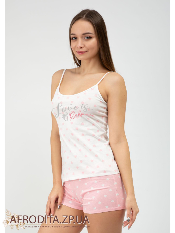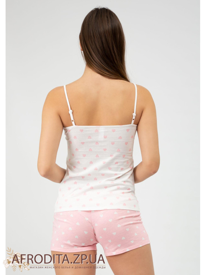 Жіноча піжама з шортами 837-12530 виготовлена з трикотажної тканини. Комплект складається з майки на тонких бретелях блакитного кольору та коротких шортів у клітку.