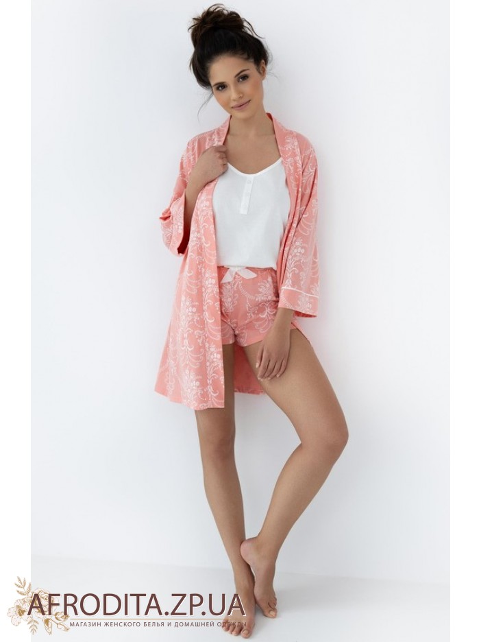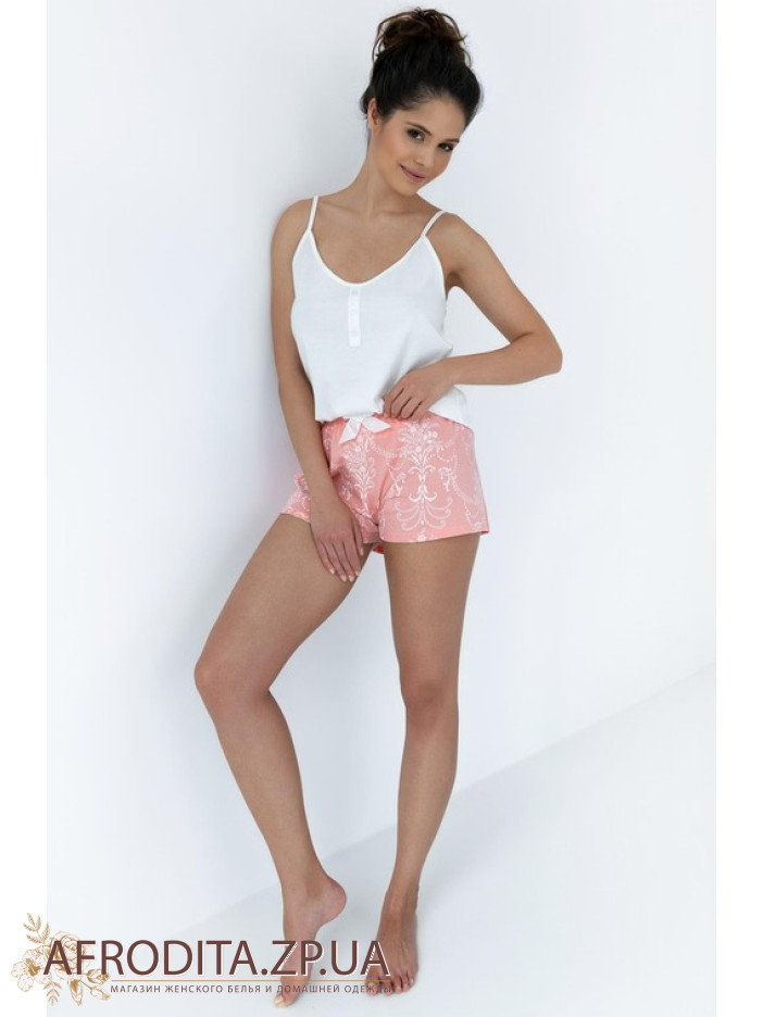 Жіноча піжама з шортами Sensis Scarlett з високоякісної бавовни. У комплект входить майка на тонких бретелях та коротких шортах на резинці з білим бантиком.