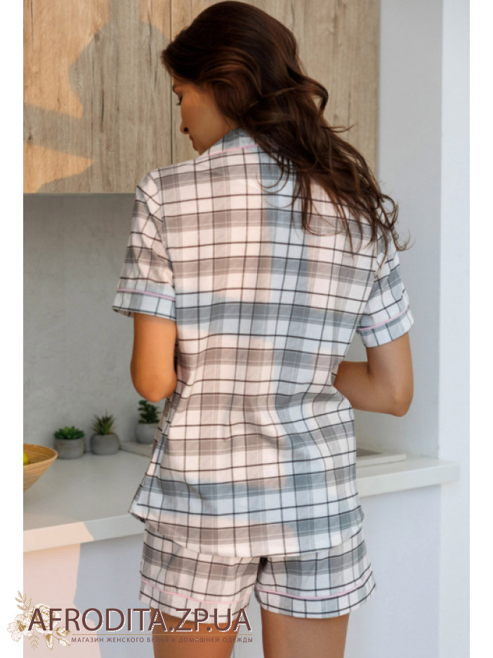 Жіноча домашня піжама сорочка з шортами із високоякісної бавовни від українського бренду Roksana. Комплект складається з сорочки на ґудзиках з короткими рукавами, на грудях розташована накладна кишеня. Шорти на гумці в талії. Модель дуже практична, тканина приємна до тіла і не викликає подразнення.