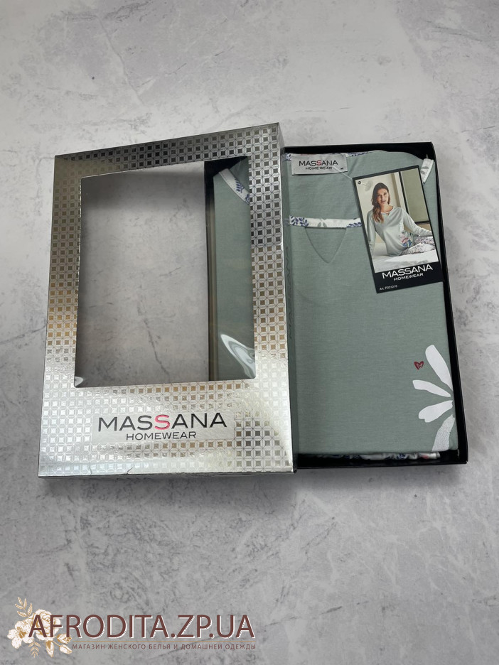 Жіноча піжама Massana P231210 складається із кофти з довгими рукавами, круглим вирізом горловини. Довгі штани з регульованою талією.