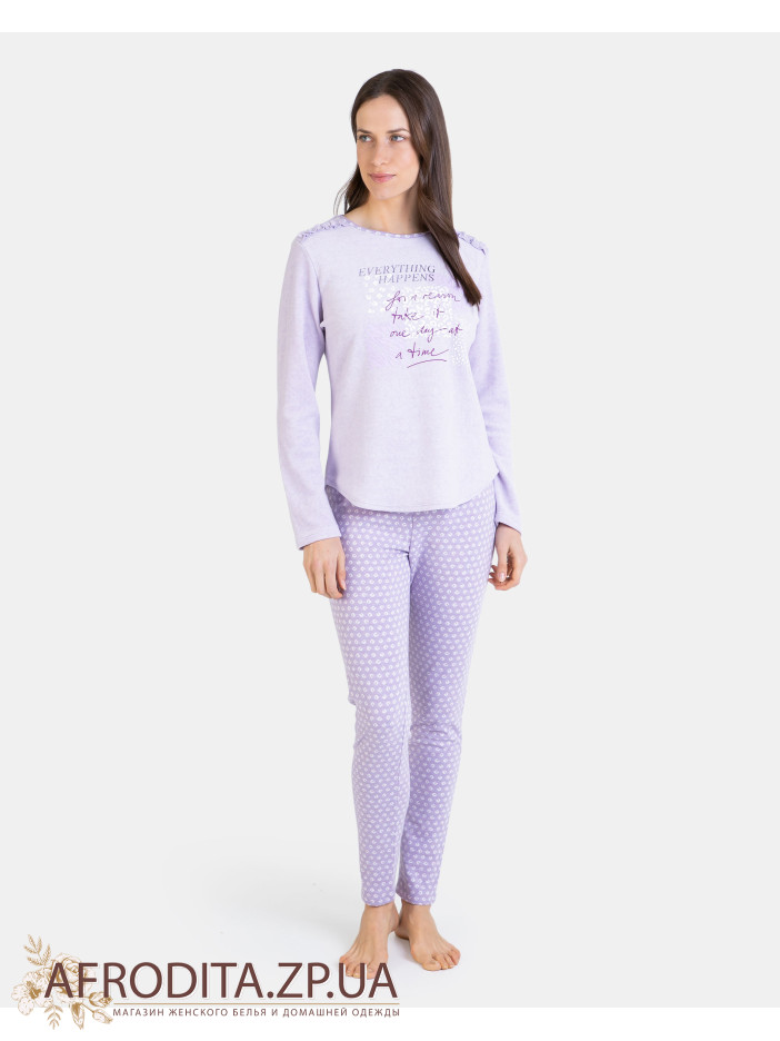 Жіноча піжама зі штанами Massana P731227. Комплект складається з джемпера ніжно-рожевого кольору з довгим рукавом та штанів прямого крою.