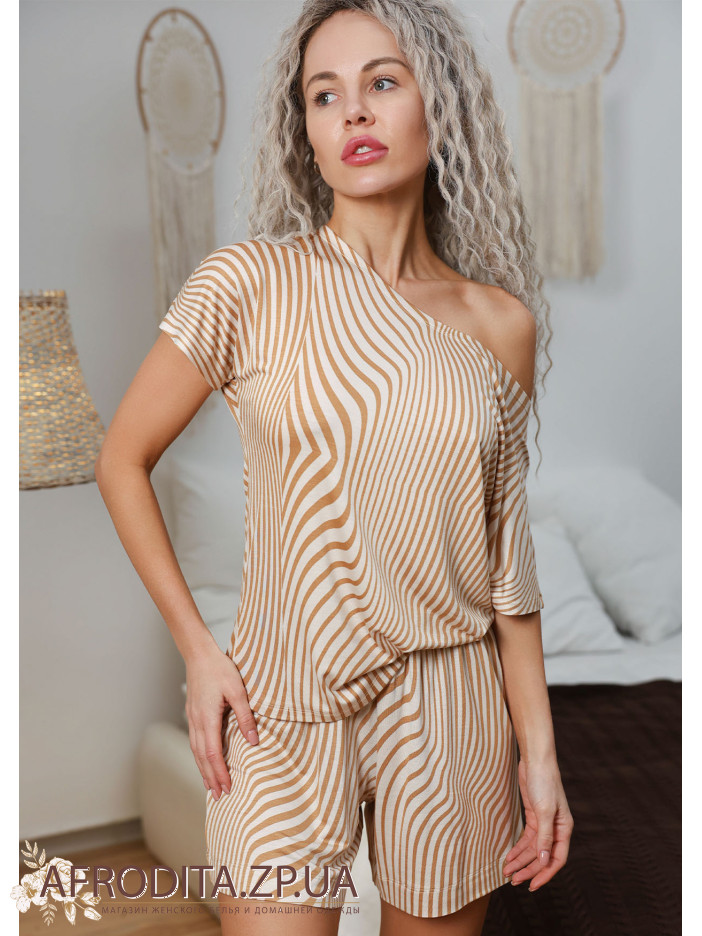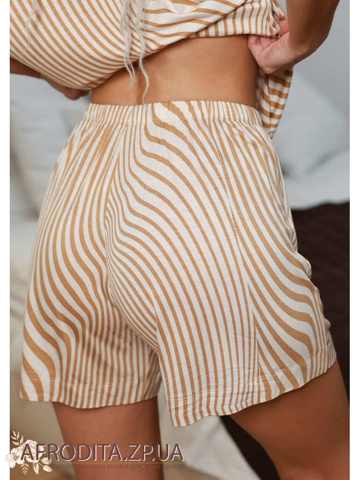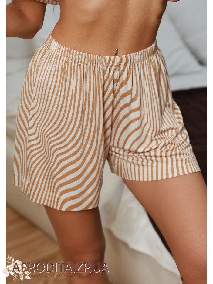 Жіноча піжама з шортами 1590-60010 з дуже м'якою та приємною до тіла віскози. Комплект складається з футболки з коротким рукавом і шорт на гумці.