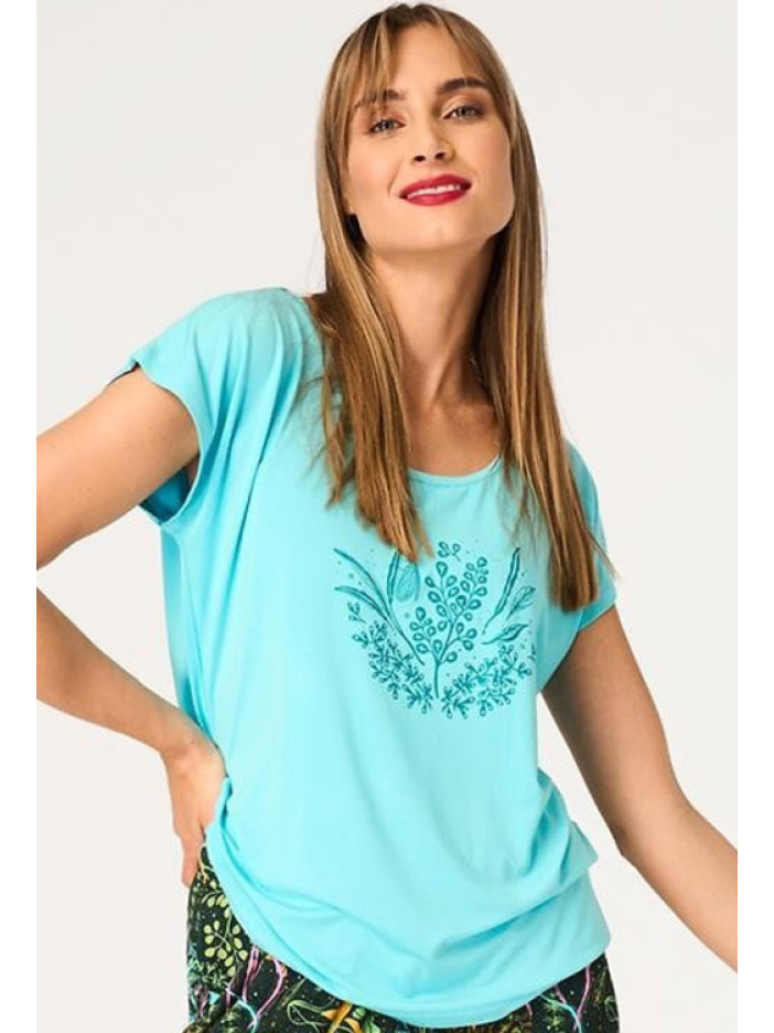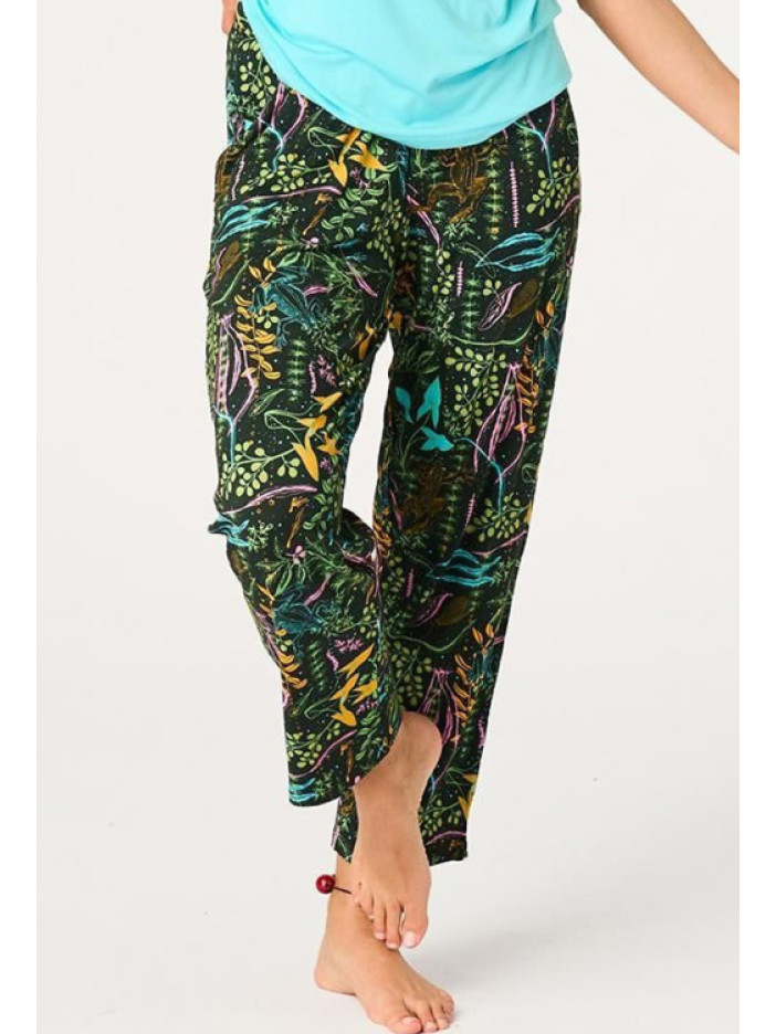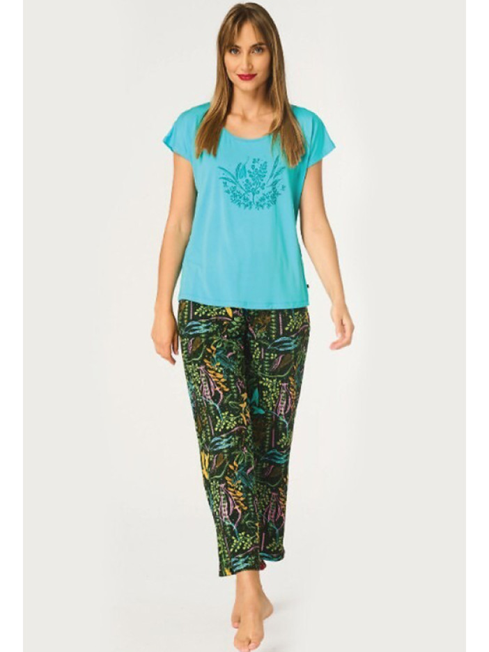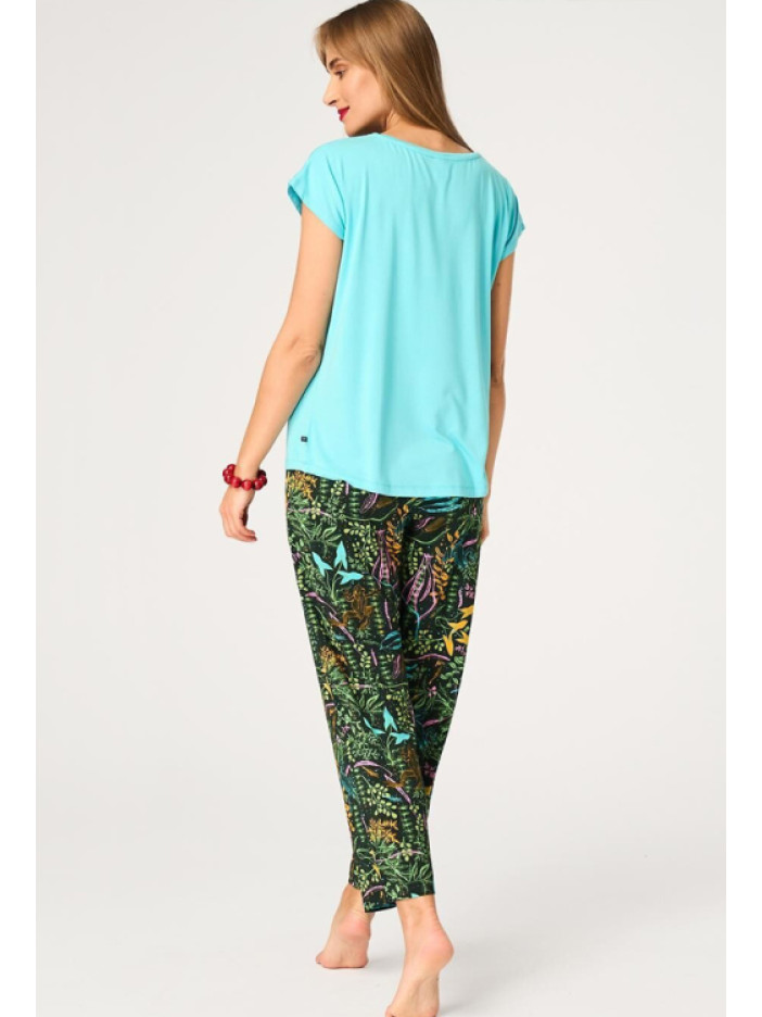 ✨ Колір: бірюзова футболка та чорні штани з рослинним принтом