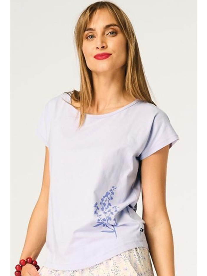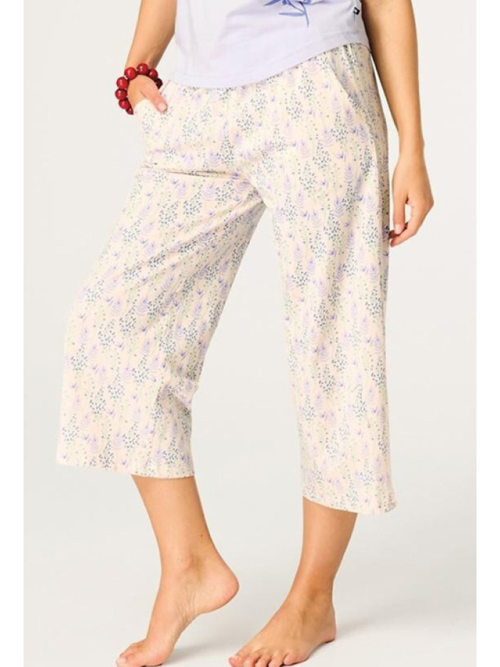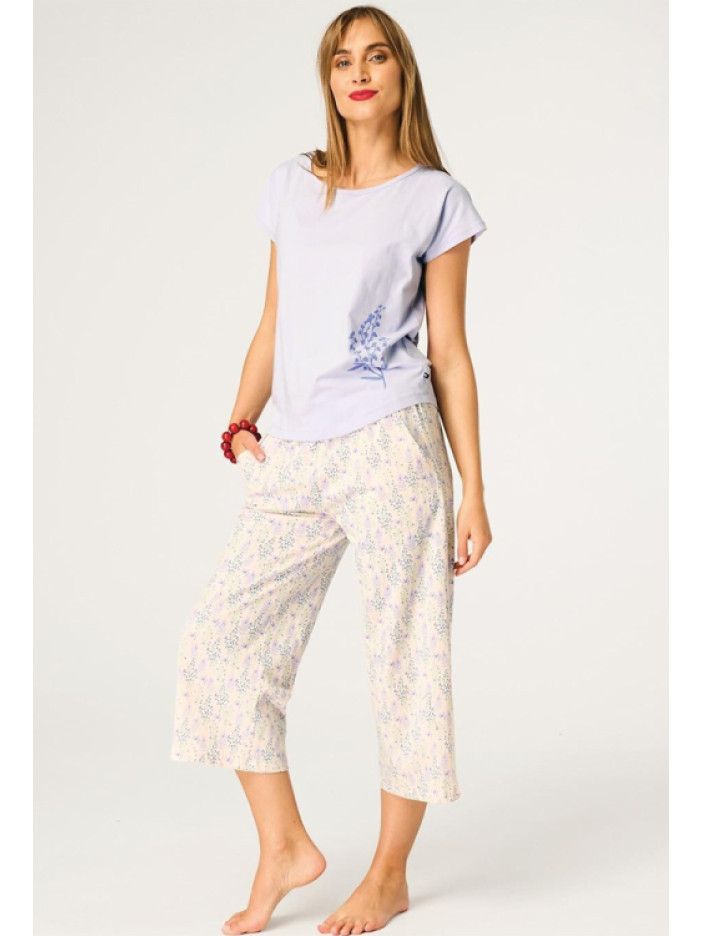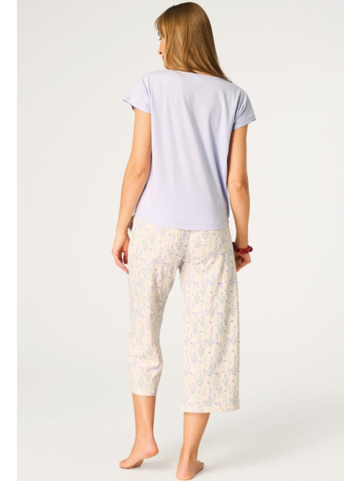 ✨ Колір: світло-фіолетова футболка та кремові капрі з квітковим принтом