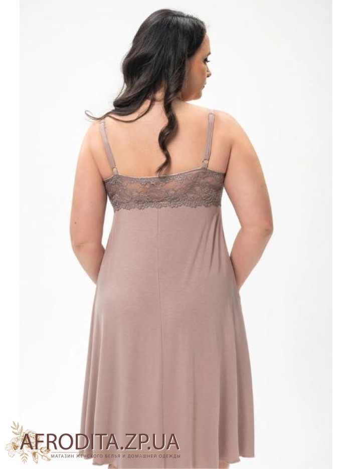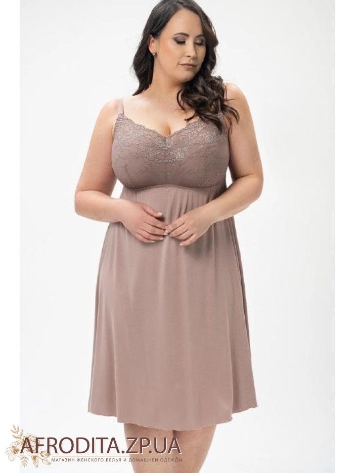 Нічна сорочка з віскози Shato 2433 із віскозного полотна. Сорочка з підрізом під грудьми на регульованих бретелях, Довжина сорочки трохи вище колін, ліф виготовлений з мереживного полотна.