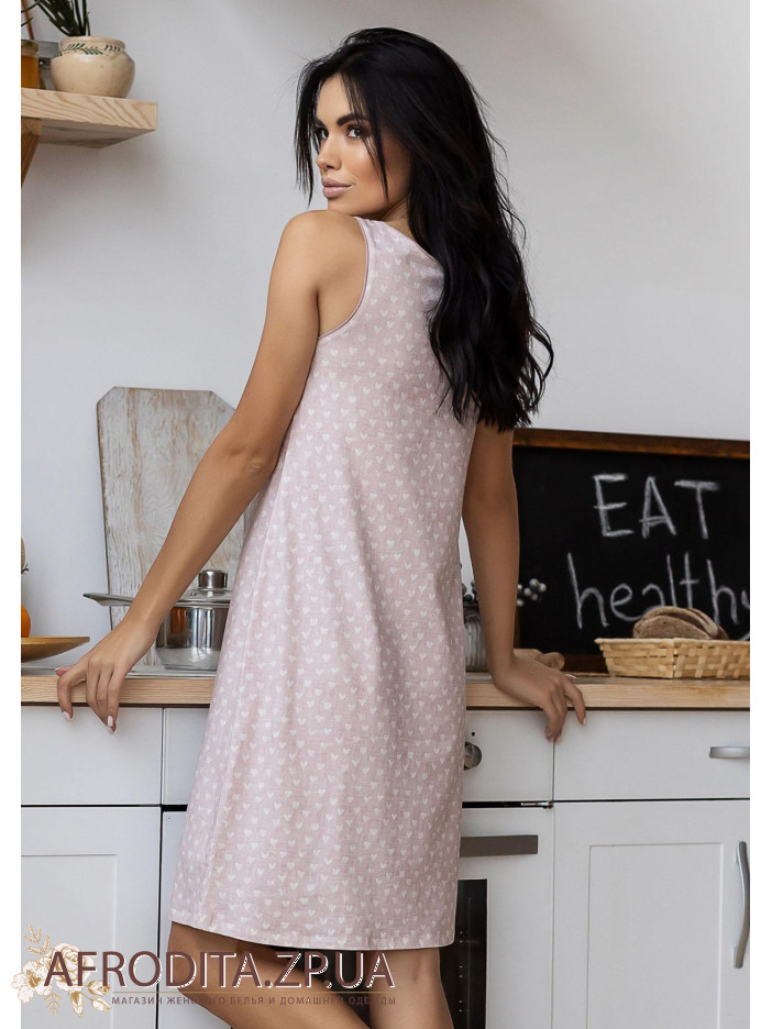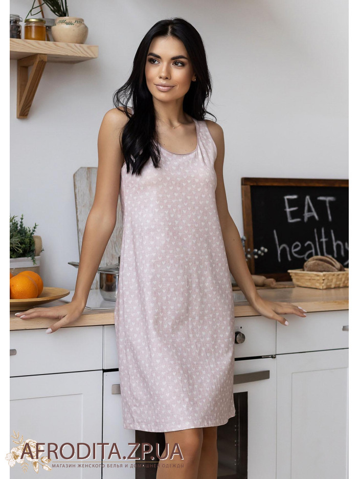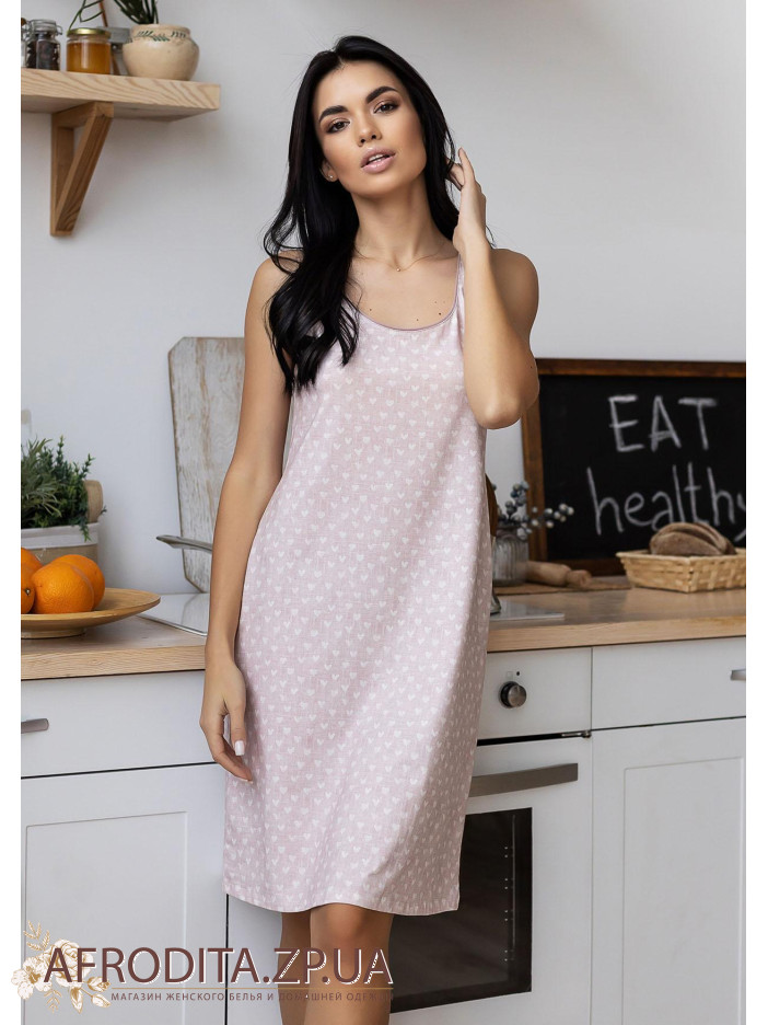 Сорочка жіноча з бавовни 1445-16504 середньої довжини. Ніч на широких бретелях без підрізу під грудьми.