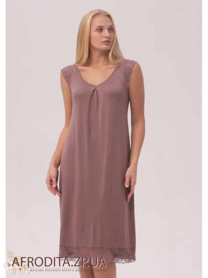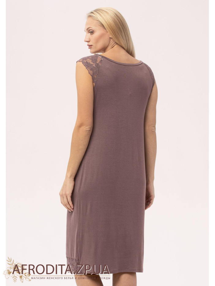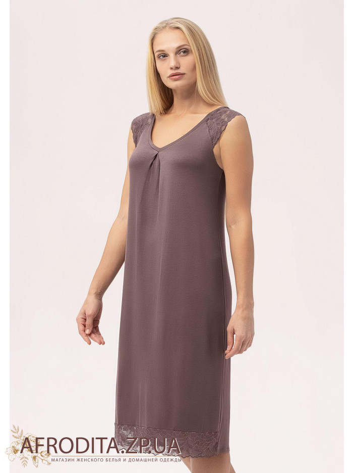 Жіноча нічна сорочка 1362-60868 на широких бретелях виготовлена з м'якої та дуже приємної до тіла віскози. Сорочка середньої довжини без підрізу під грудьми, нижня частина виробу оздоблена ажурним мереживом.