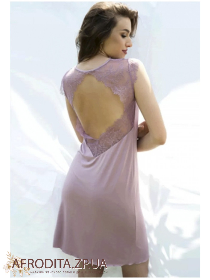 Жіноча нічна сорочка з підрізом під грудьми Shato 2311 із м'якої віскози. Сорочка на широких бретелях довжиною вище колін. V-подібний виріз декольте, а також спинка декоровані мереживом.