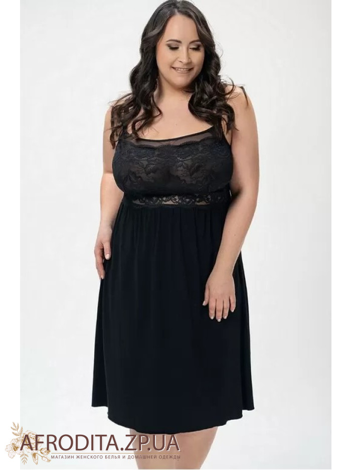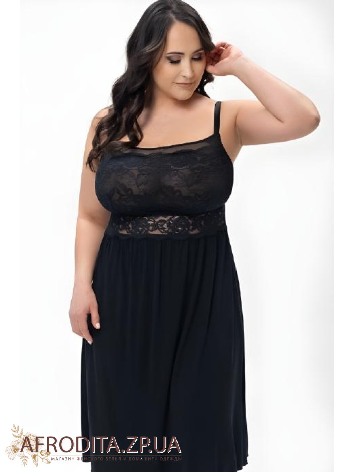 Жіноча нічна сорочка Shato 2432 з м'якої та дуже приємної до тіла віскози. Рубашка довга до колін на широкій регульованій бретелі. Область декольте виготовлена із напівпрозорого мережива.
