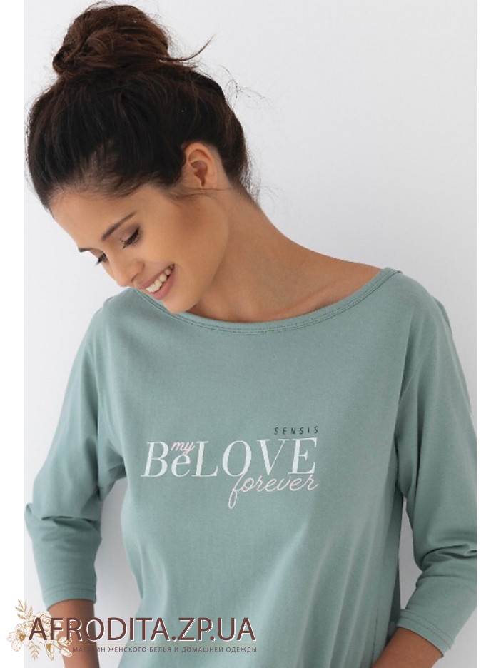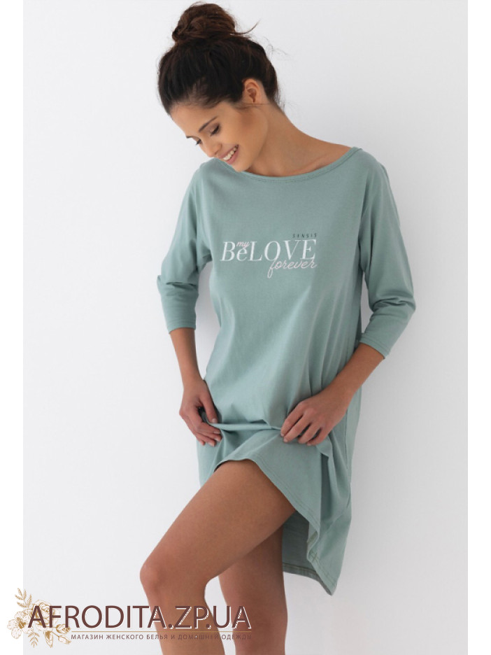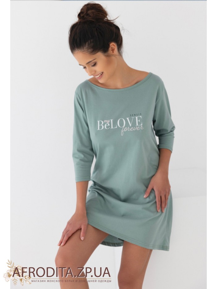 Жіноча сорочка Sensis Garden із бавовни. Сорочка з довгими рукавами та округлою горловиною. Довжина туніки вище колін.