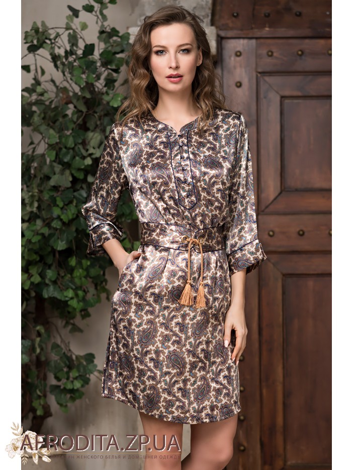 Домашня туніка "Персія" 3405 від Mia-Amore з натурального шовку. Туніка вище колін із застібкою на ґудзиках. З боків вироби розташовані кишені, в комплекті йде двосторонній пояс з китицями. Склад: 70% натуральний шовк, 25% поліестер, 5% еластан.