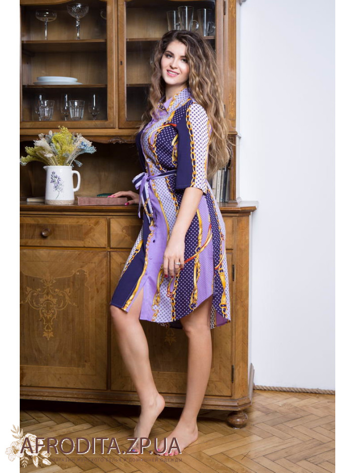 Туніка домашнє жіноче "Лилла" 16406 від Міа-Міа виконана з прінтована віскози. Модель на поясі приталеного силуету середньої довжини. Туніка сорочкового типу з коміром стійкою і планкою застібкою на ґудзиках. Рукав прямий довжиною до ліктя. У бічних швах вироби кишені. Склад: 100% віскоза.