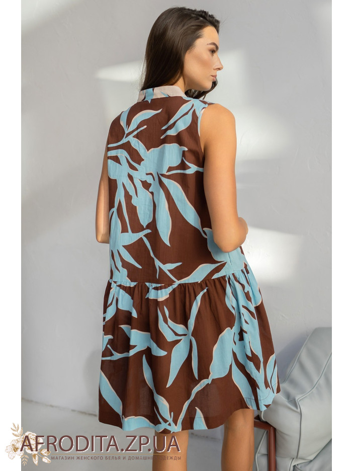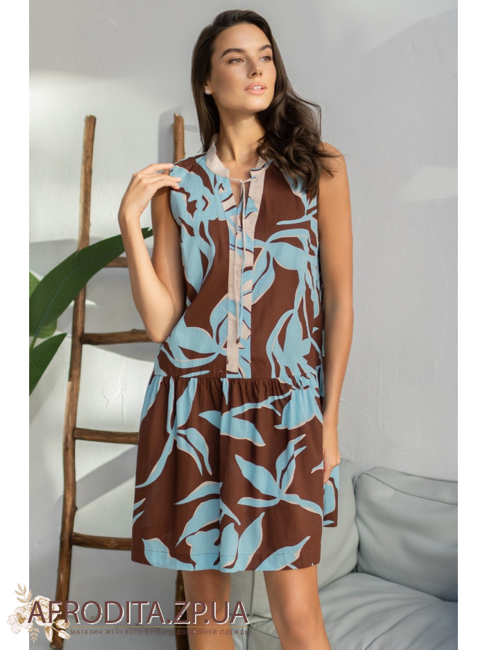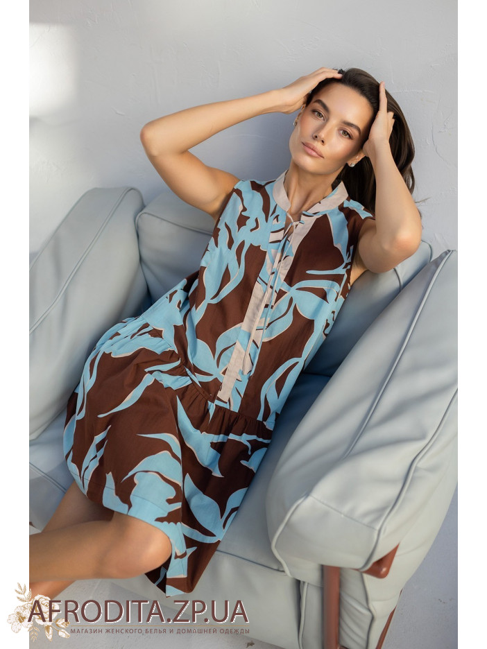 Коротка туніка Шеріл 2000 від Mia-Amore без рукавів, вільного силуету та оборки по низу. Виріб виконаний із принтованої бавовни.