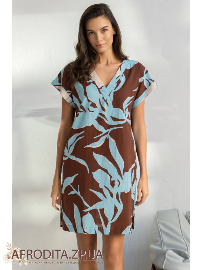 Коротка туніка Шеріл 2001 від Mia-Amore вільного силуету з коротким рукавом. Виріб виконаний із принтованої бавовни. З боків туніки розташовані розрізи.