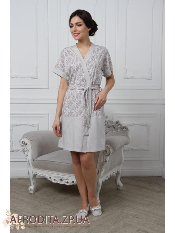 Халат жіночий "Emmi" 40146 з натуральної бавовни прямого силуету, з коротким рукавом, довжиною до коленаСостав: бавовна 80%, еластан 20%.