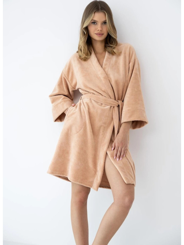 Однотонний махровий халат на запах у благородному золотому відтінку — це поєднання затишку, тепла та домашньої елегантності: м’яка махрова тканина приємно огортає тіло, забезпечуючи комфорт після душу або у прохолодні вечори, запах на пояс дозволяє зручно регулювати посадку та підкреслює жіночний силует, а натуральні компоненти у складі роблять халат приємним до тіла та практичним у щоденному використанні, ідеальний вибір для домашнього відпочинку та щоденного комфорту