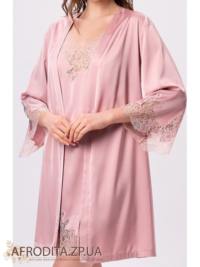 Жіночий атласний халат 2600/1 у кольорі пудра від українського бренду Shato. Халат на запах довжиною вище колін, рукав 3/4 краю декоровані ажурним мереживом у тон виробу. До халата також можна підібрати сорочку 2600. Дана модель виглядає дуже ніжно і елегантно і може бути чудовим подарунком близькій вам людині.