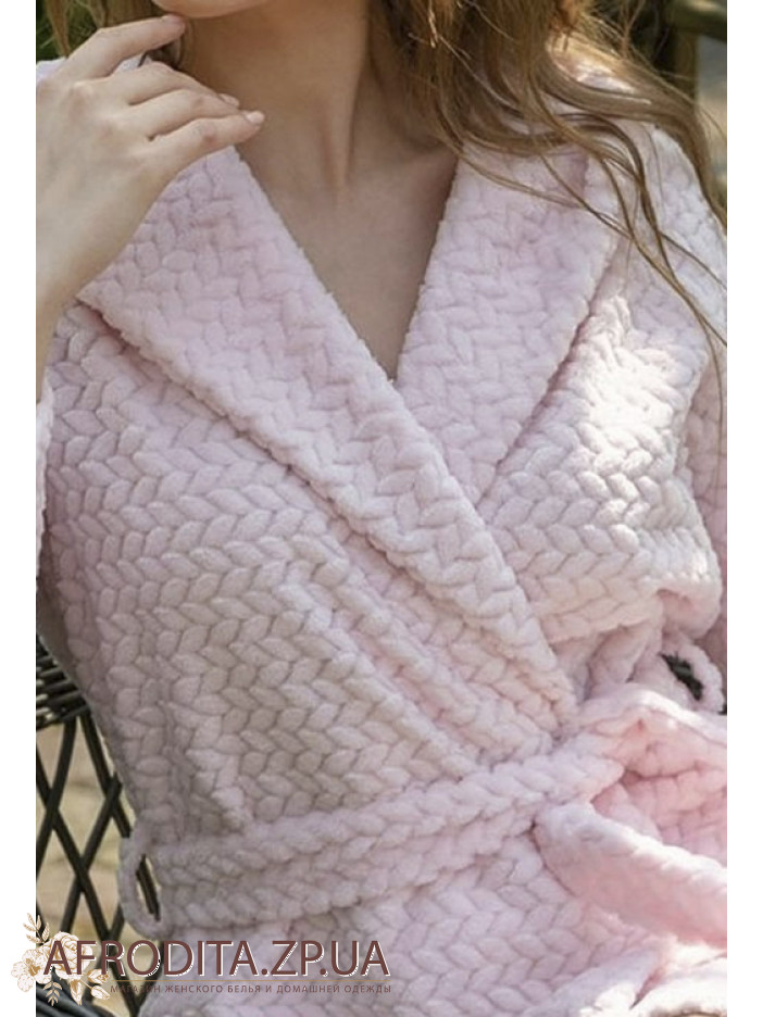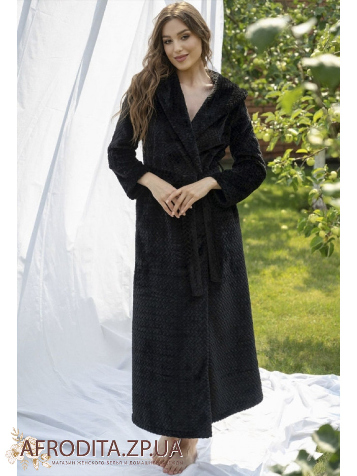 Жіночий теплий халат Shato 2338 виготовлений із фактурного флісу. Халат з капюшоном довгим у підлогу.