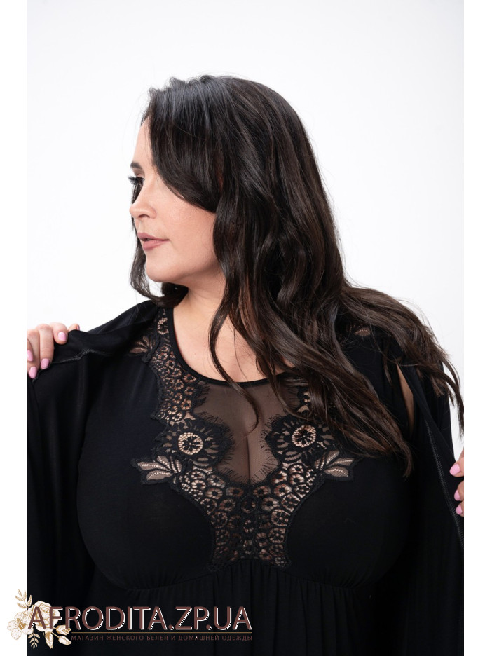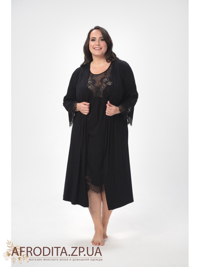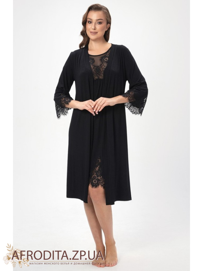 Жіночий халат на запах Shato 2514/1 з ніжної та дуже приємної до тіла віскози. Халат нижче колін з рукавами 3/4 краю яких прикрашені ажурним мереживом у тон виробу. Халат добре комплектується із сорочкою 2415.