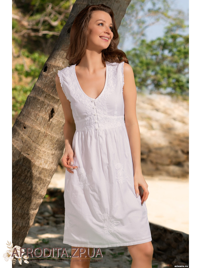 Плаття-туніка "Санта-Моніка" 6885 від Mia-Amore виготовлена ​​з бавовни. Туніка вище колін, в області горловини застібається на гудзики. Колекція весна-літо 2019. Склад: 100% бавовна.
