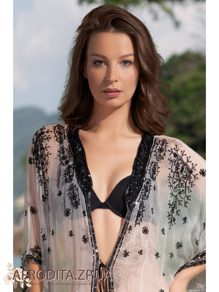 Пляжна туніка нижче колін "Візантія" 6952 від Mia-Amore з тонкої і дуже приємною до тіла вискозной тканини. Верхня частина туніки і горловина прикрашені вишивкою з бісеру. Склад: 100% віскоза.