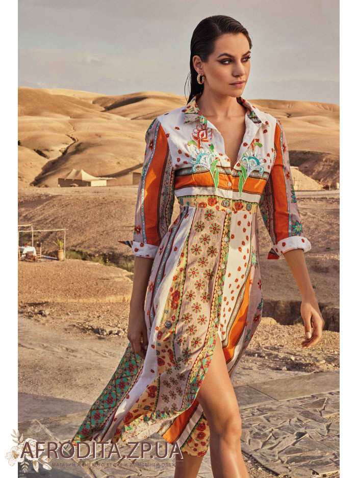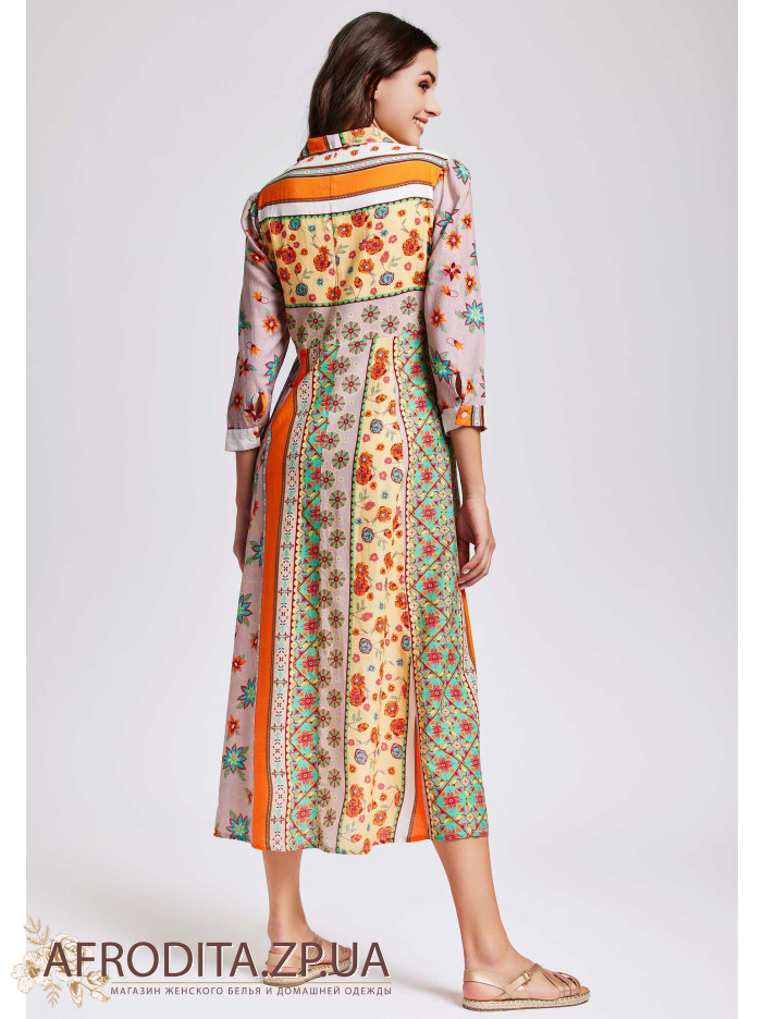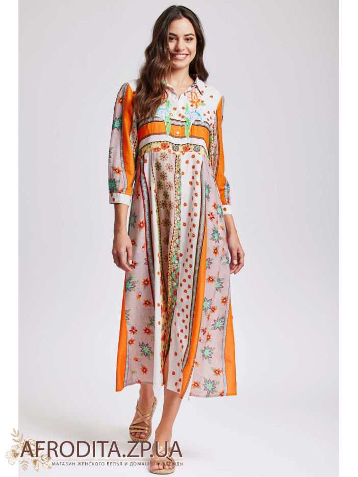 Стильне літнє плаття David DB24-026 з ніжної бавовни. Довжина максі, рукав 3/4, комір сорочкового типу. Сукня застібається на гудзики.