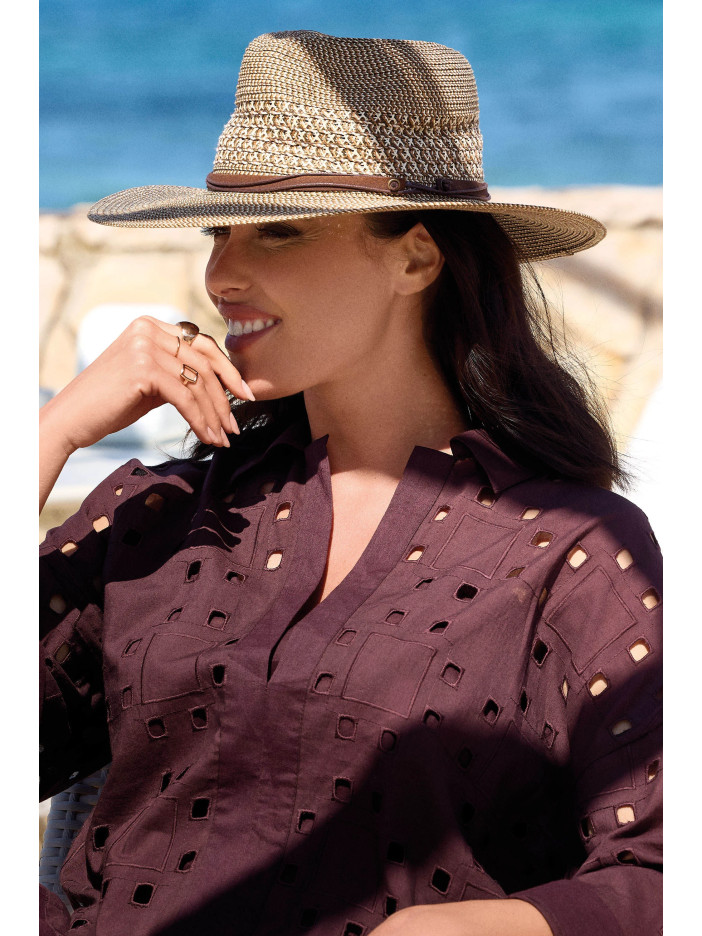 Солом’яний капелюх італійського бренду — стильний та практичний аксесуар для літнього сезону, виконаний з легкого плетеного матеріалу, що забезпечує чудову вентиляцію та комфорт у спекотну погоду, класична форма з широкими полями надійно захищає від сонця, а декоративний ремінець додає елегантності та завершує образ, універсальний дизайн легко поєднується з пляжним і повсякденним одягом, створюючи витончений курортний стиль