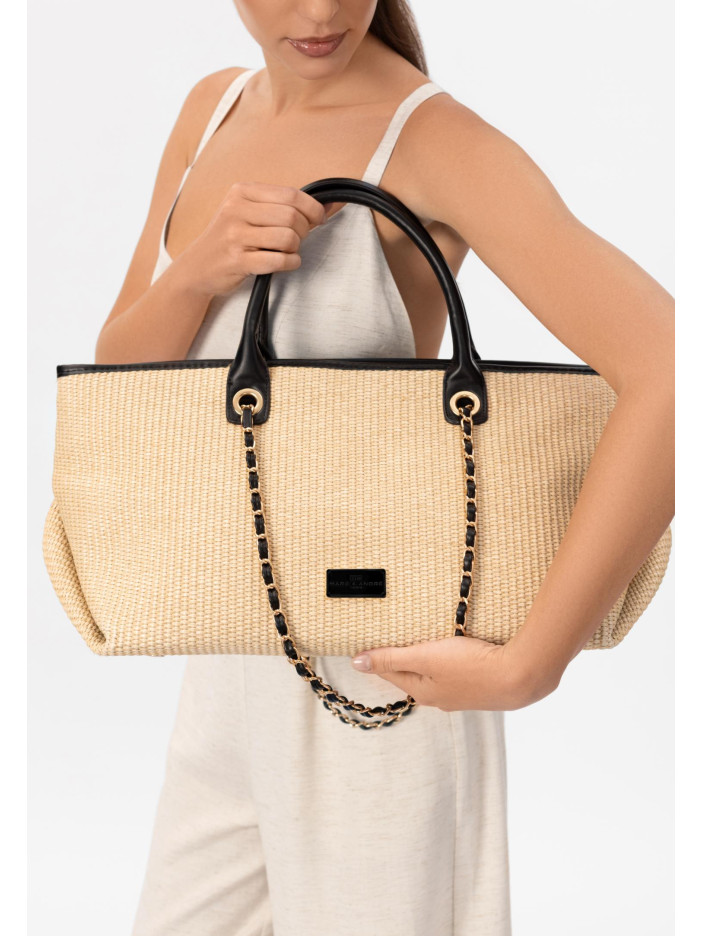 Сумка-тоут Marc & André — це втілення елегантності та шику в кожній деталі: витончене поєднання плетеної текстури та шкіряних елементів створює сучасний і вишуканий образ, благородний бежевий колір із контрастними чорними акцентами виглядає стримано та стильно, а декоративний ланцюжок додає ефектної родзинки, цей аксесуар підкреслить бездоганний смак і стане ідеальним доповненням літнього гардероба, гармонійно поєднуючись як із повсякденними, так і з більш елегантними образами