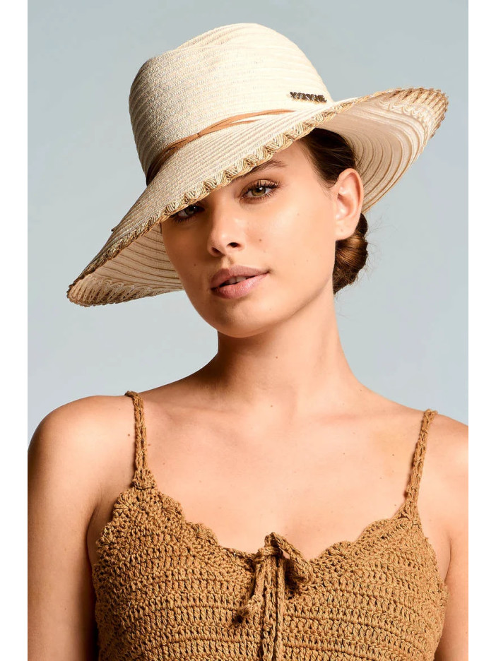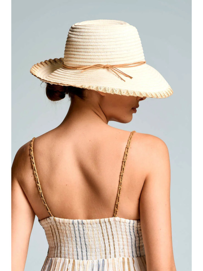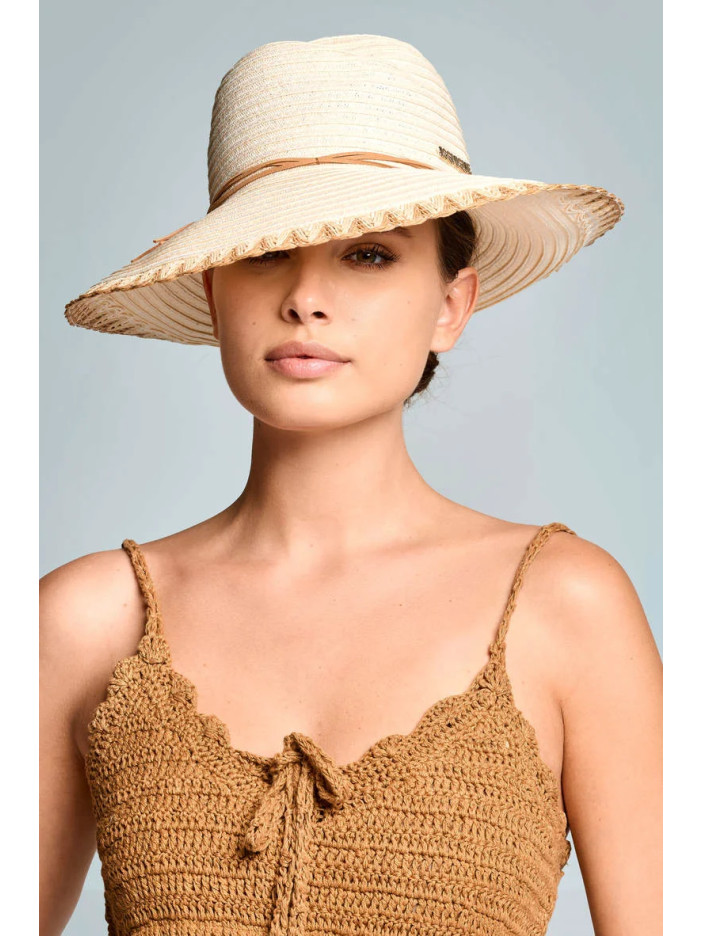 Солом’яний капелюх італійського бренду — вишуканий та жіночний аксесуар для літнього сезону, виконаний з легкого плетеного матеріалу, що забезпечує комфорт і чудову вентиляцію у спекотну погоду, широкі м’які поля красиво обрамляють обличчя та надійно захищають від сонця, лаконічна декоративна стрічка та акуратне фактурне оздоблення по краю додають моделі витонченості й елегантності, ідеально доповнює пляжні та курортні образи, створюючи легкий і стильний літній настрій