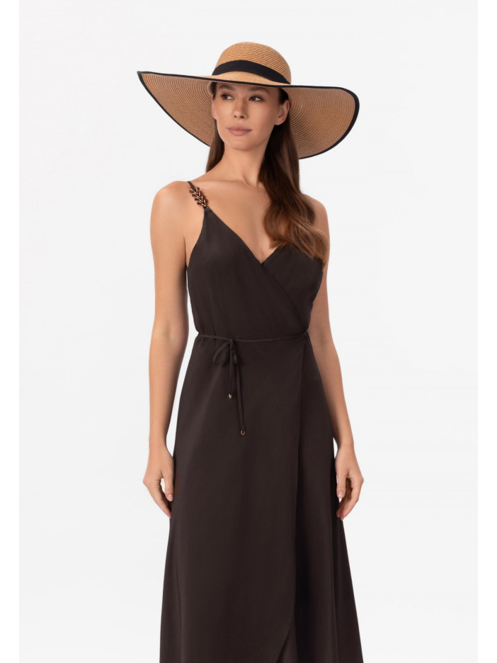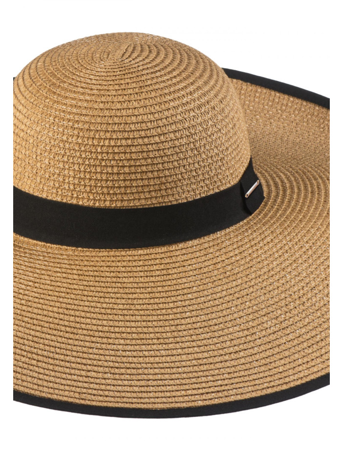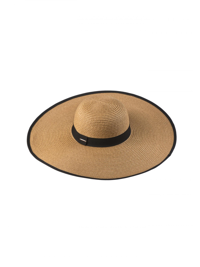 Елегантний літній капелюх із легкого плетеного матеріалу — ідеальне поєднання стилю та практичності для сонячних днів: широкі поля надійно захищають від сонця, створюючи ефектний силует і додаючи образу витонченості, контрастна стрічка з акуратним металевим декором підкреслює сучасний характер аксесуара та робить його стильним акцентом будь-якого літнього образу