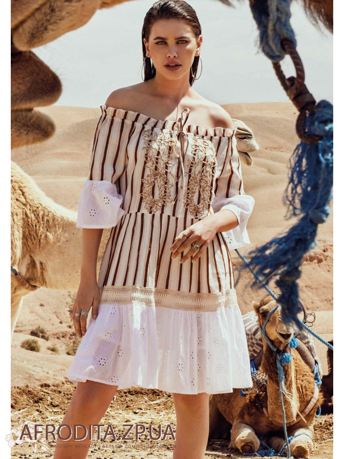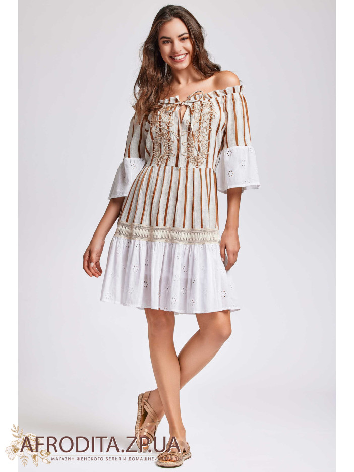 Туніка-сукня David DB24-015 - ідеальний вибір для модного літнього образу. Туніка до колін із високоякісної бавовни, Рукава 3/4.