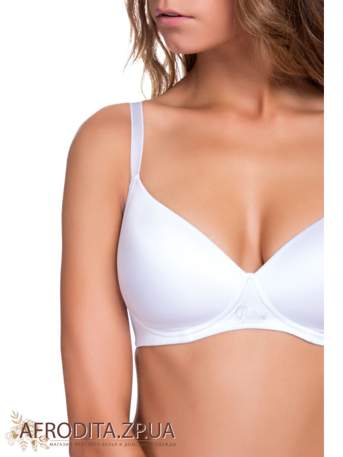 Бюстгальтер з формованими чашками з тонкого поролону, без кісточок. Оригінальний дизайн доповнений написом leilieve між чашками. Незнімні бретельки, регульовані по довжині. Застібка на два гачки, чотири позиції
